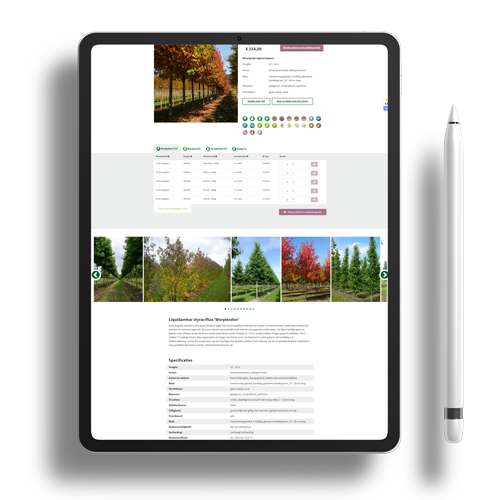 Van den Berk Nurseries specializes in medium to very large sized trees and shrubs. With around 450 hectares and a range that encompasses more than 1600 species and cultivars, we are one of the largest nurseries in Europe. Each day, more than 100 employees working at three locations use their knowledge and passion to cultivate, sell and deliver top quality trees to customers across 35 countries.