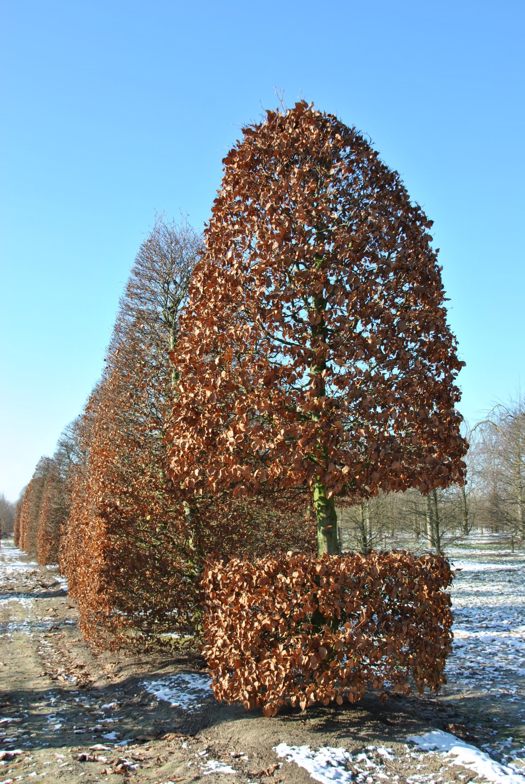 Avoid disappointments and choose good quality shaped trees. They already have a certain stem girth, they are properly trained and have a balanced branch structure and a very distinct shape. When a shaped tree has not been properly trained and pruned from the outset, in many cases you can no longer correct it later on and it will always be visible. For this reason always be highly critical of this. In addition, only buy shaped trees that are complete, that is to say fully formed, because although shape trees can be lovely eye-catchers, poorly executed shaped trees can have the opposite effect on a project.