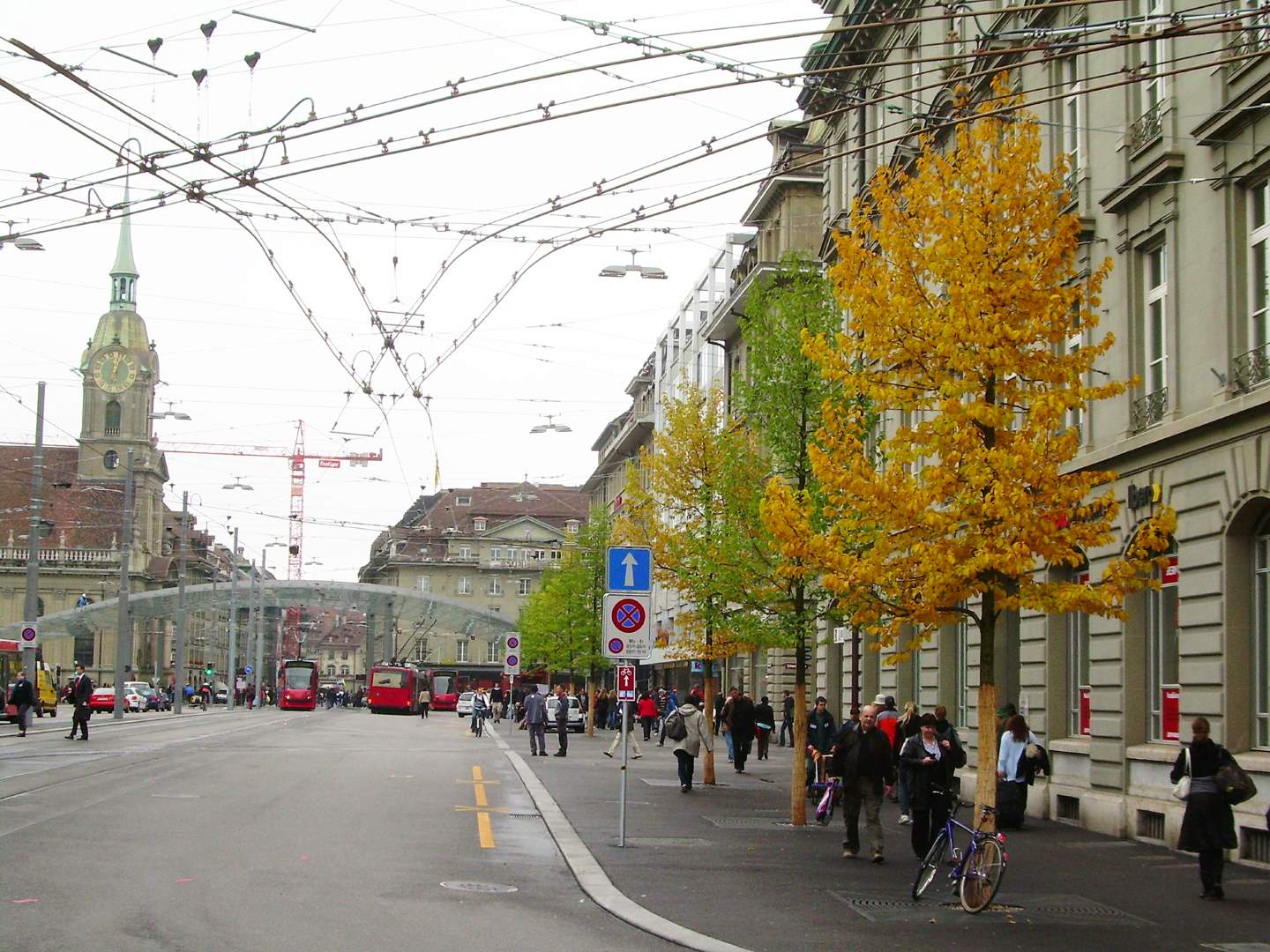 The station square in Bern, featuring the entrance to the railway station and the Citizens’ Hospital, was embellished with large magnolia trees. Magnolia kobus grows well as a clear stem and is also ideal for avenues and streets. The tree produces large, white flowers in spring and very unusual pinkish red fruits in autumn. The fruits are not very numerous and remain on the tree for a long time.