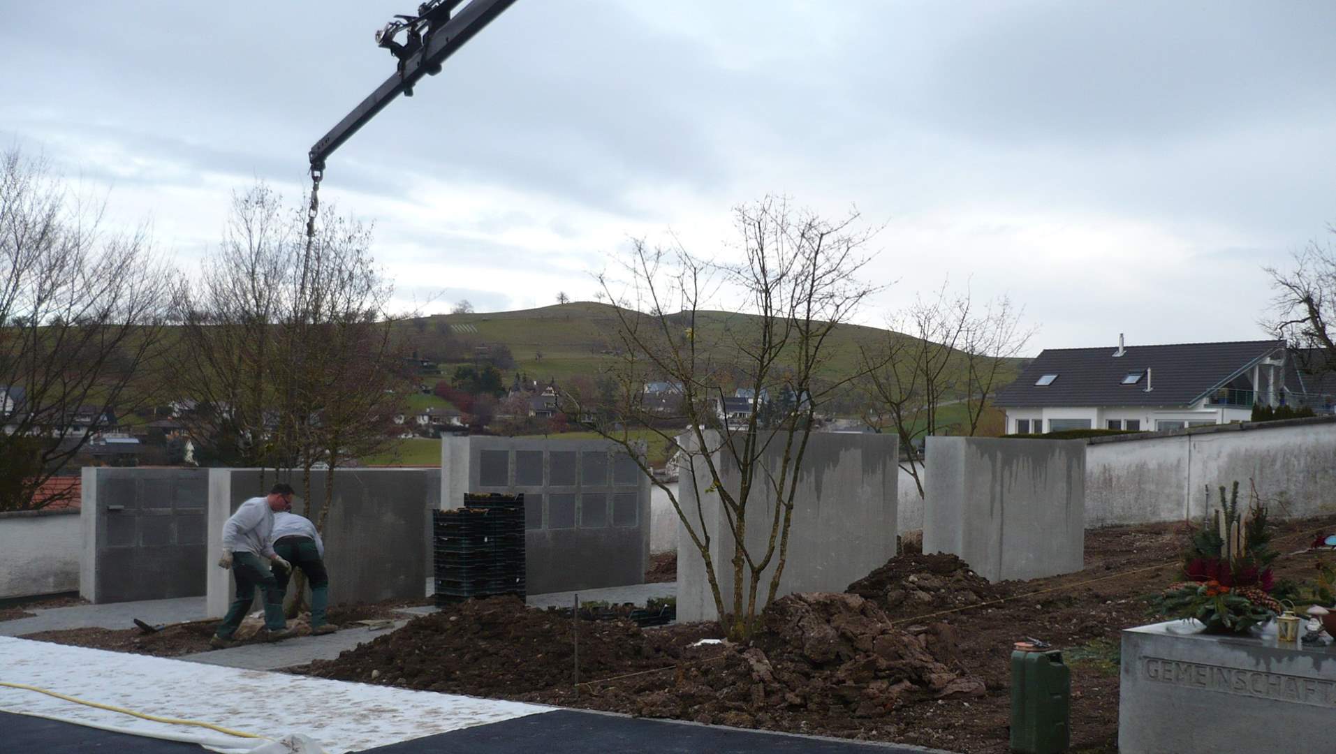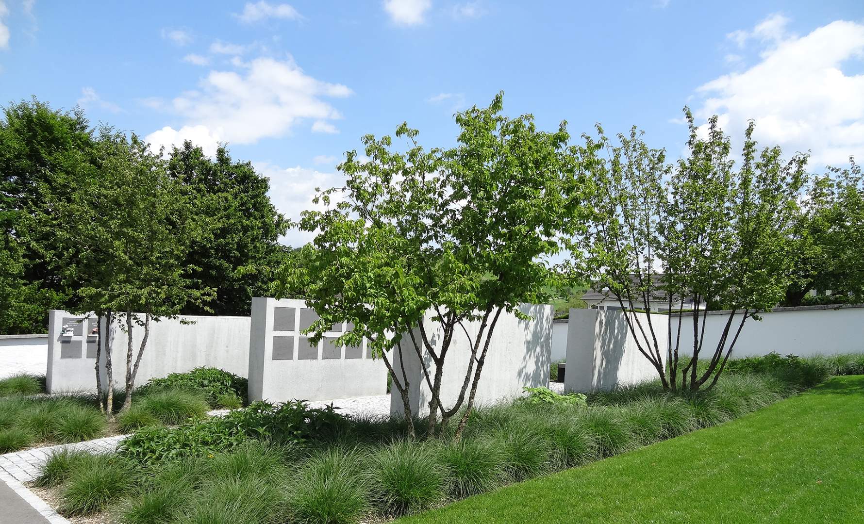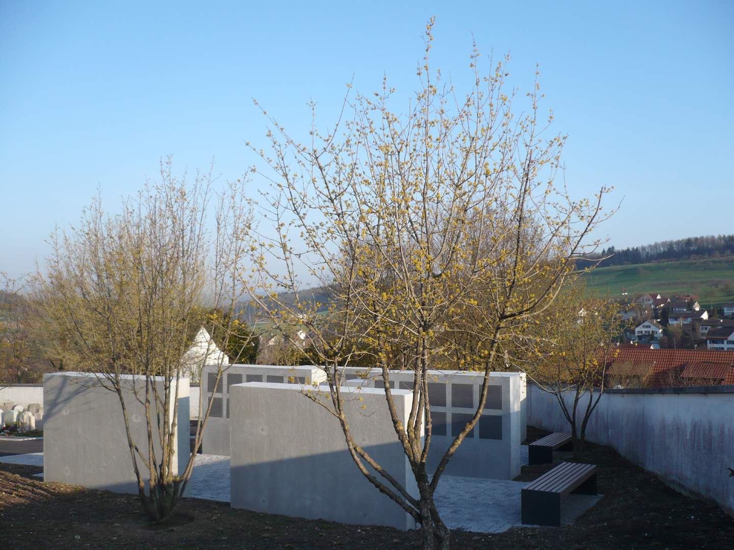 Martin P. Abrahamse signed up for the design of this cemetery which is situated against a slope in the Swiss town of Arisdorf, near Basel. He chose simple greenery with a highly ornamental value. The multi-stem Cornus mas produces yellow flowers in early spring, red berries in summer and a lovely scaling bark in winter.