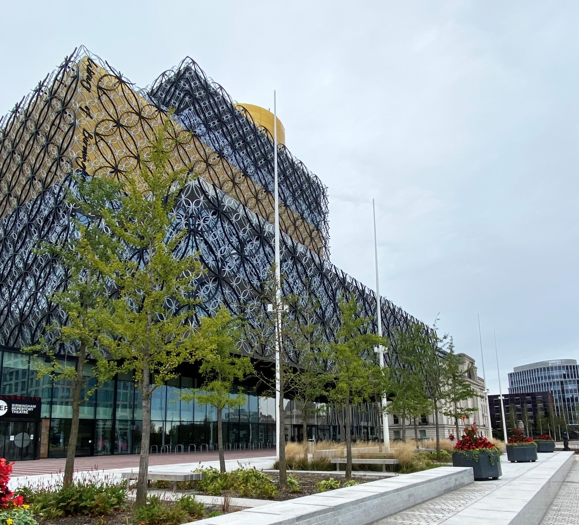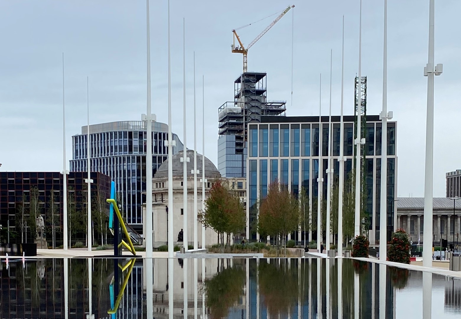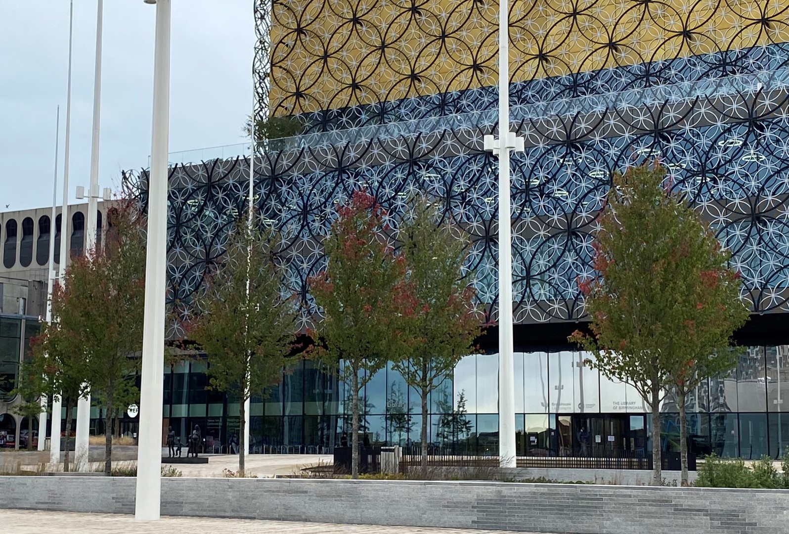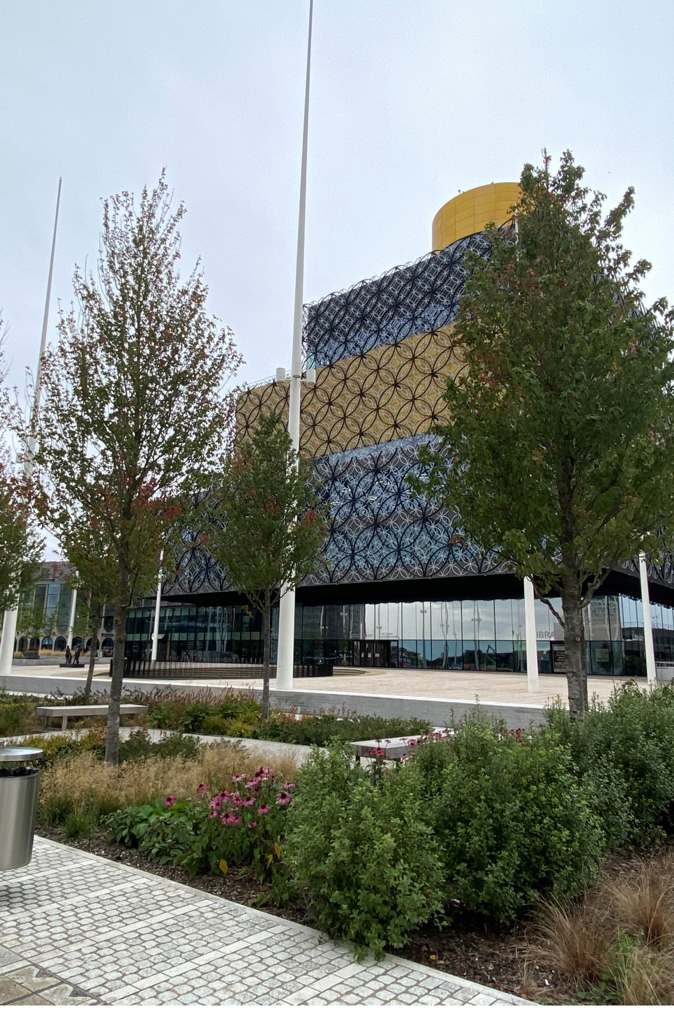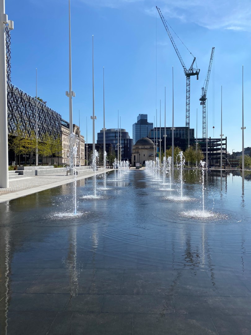 A beautiful combination of trees, water and modern architecture in the historic center of Birmingham. Acer rubrum 'Sun Valley', Ginkgo biloba and Betula pendula, all in size 50-60, were planted by Killingley NT in winter and spring 2018. The photos are taken in August 2019 and spring 2021