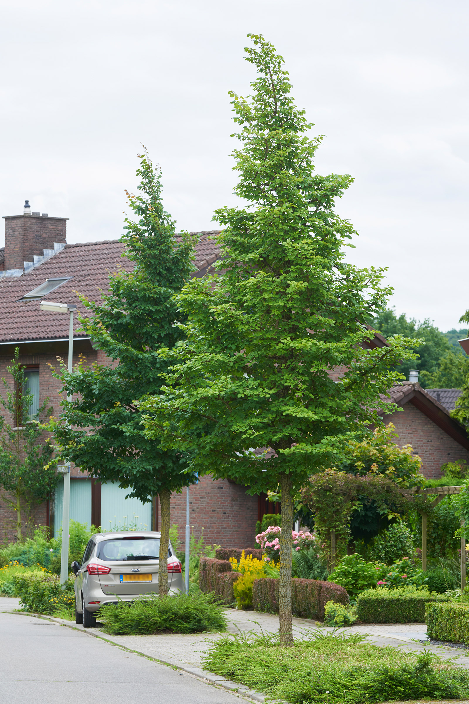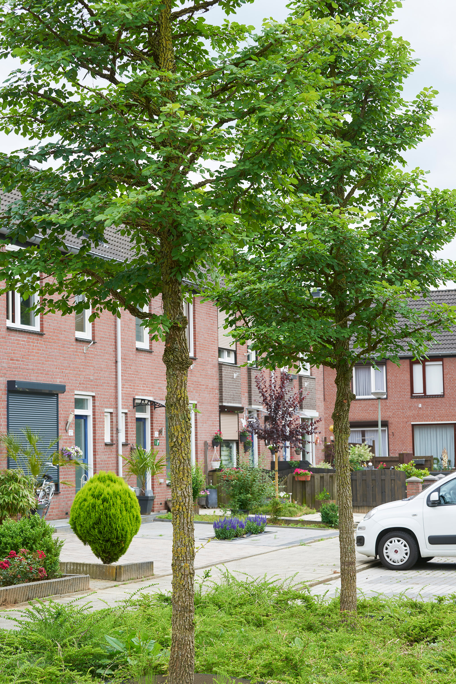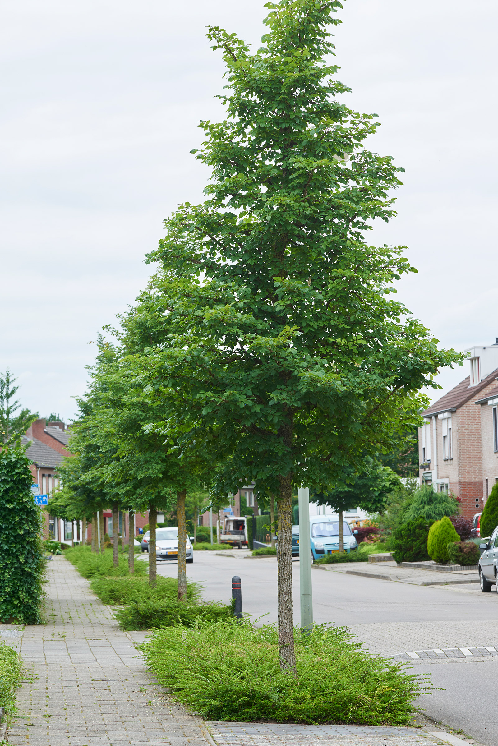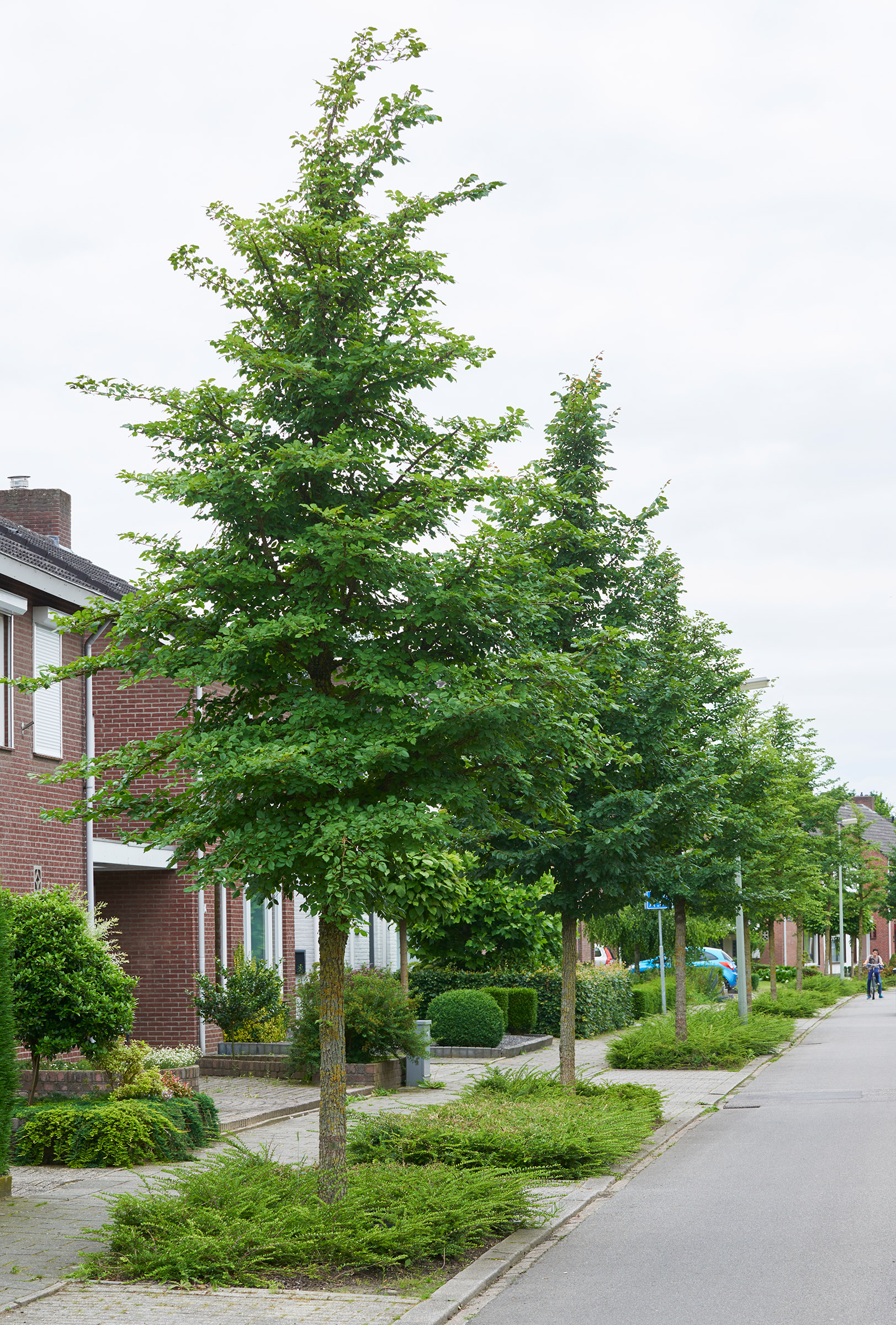 De Heeg is a spaciously designed district in the south eastern part of the municipality of Maastricht. This residential area characterised by a lot of greenery which goes towards explaining its popularity among young families. Meendaal is a kilometre-long ridge that runs through the district. Both sides of it were planted with a lesser known elm: Ulmus minor ‘Cloud Corky’ in size 30-40. This elm has a beautiful bark and strong corky fissures on its branches. Moreover it has a stunning autumn colour. The trees grow perfectly in their new location and are an asset to the district.