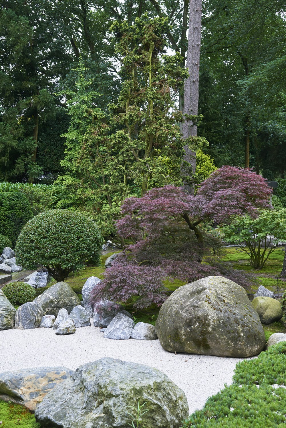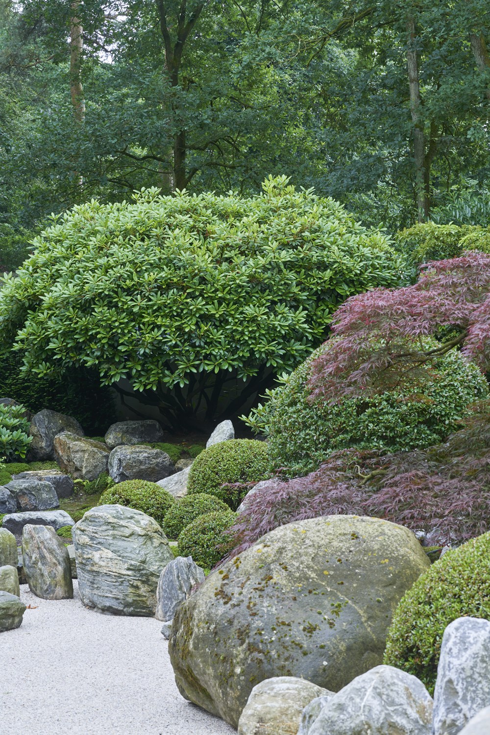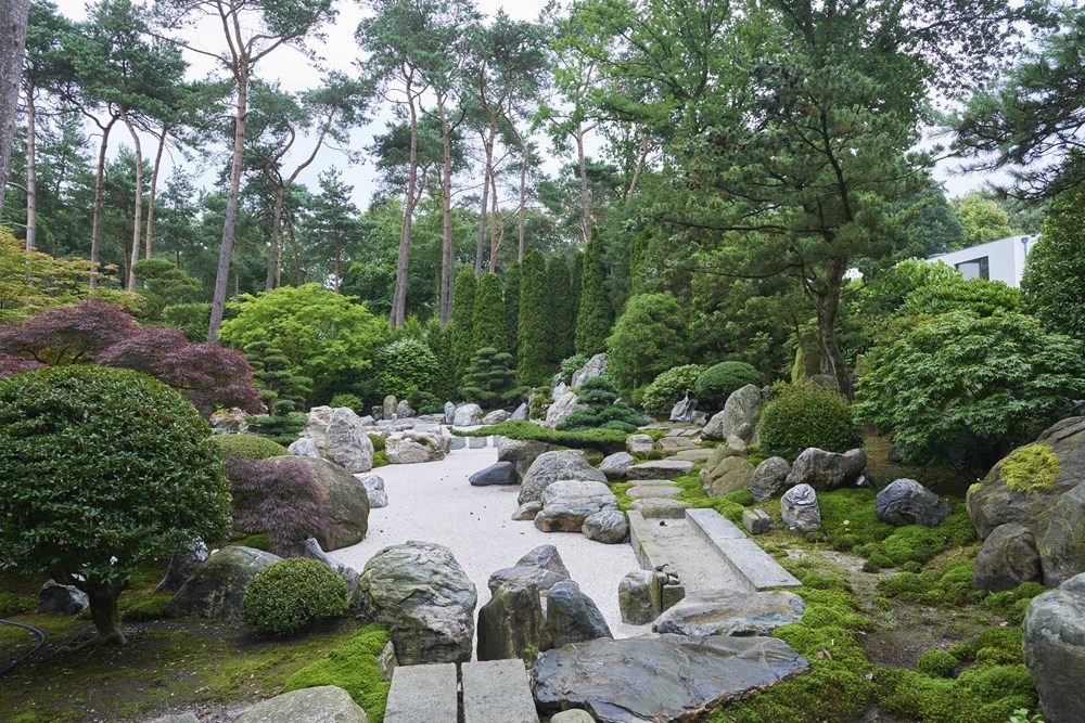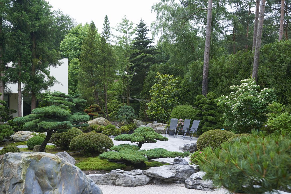 The site of this garden in the middle of the Netherlands was originally a forest. The owner is from Japan and she designed the garden herself as well as taking on a large part of the execution. She opted for lots of evergreen trees and shrubs. A wide selection of conifers was planted, interspersed with groups of rhododendrons. A number of macro bonsai trees were selected to create the ultimate Japanese mood. According to our garden photographer, it resulted in the most beautiful Japanese garden he had ever seen!