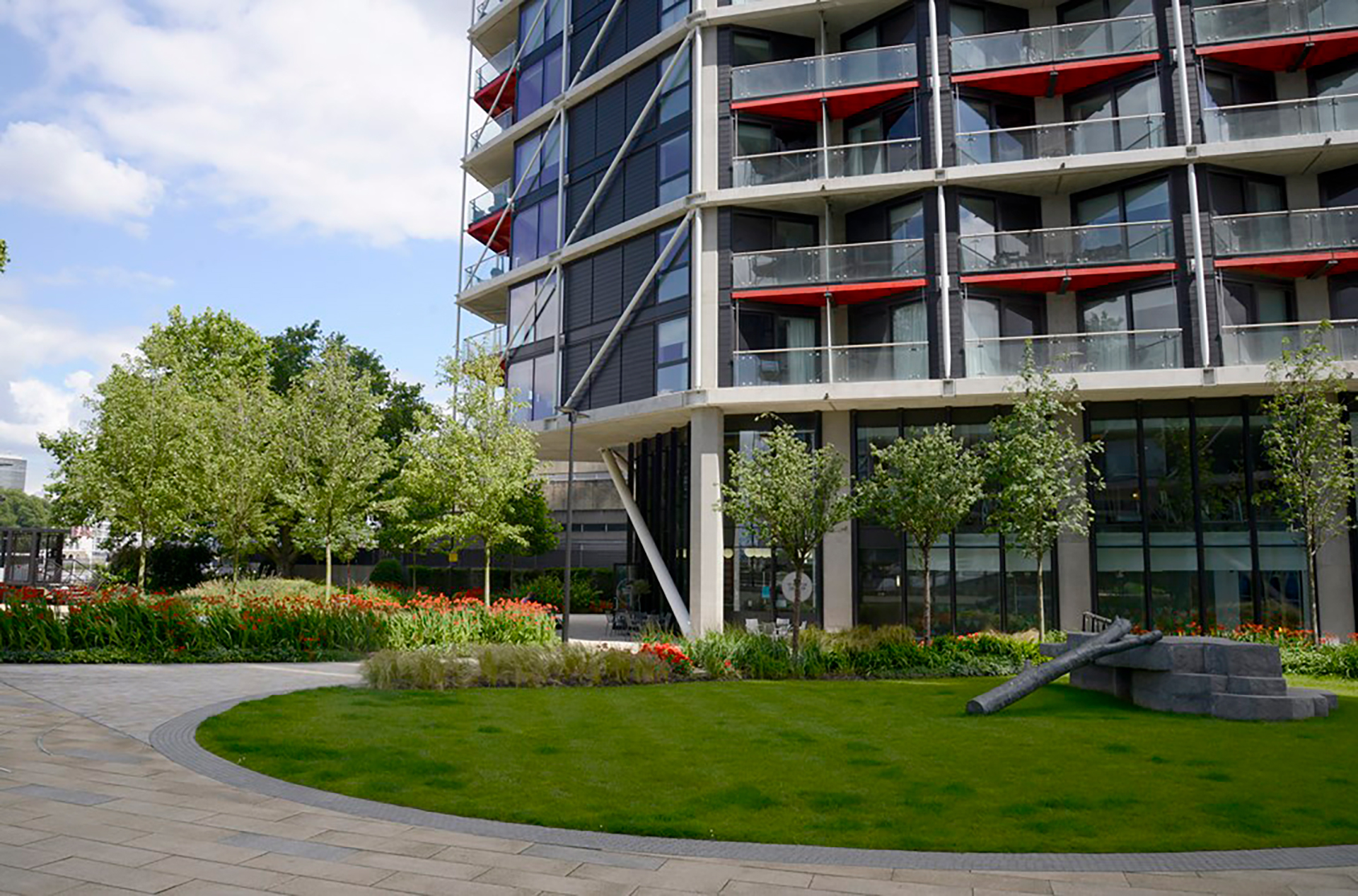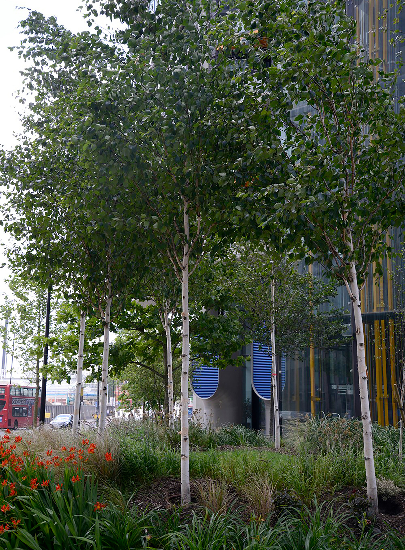 The apartments are in the upper price class and it was therefore only logical that high demands would be placed on quality, including that of the surrounding grounds. Among other species, Elite Landscapes planted Betula utilis var. jacquemontii and Platanus hispanica on this site.
