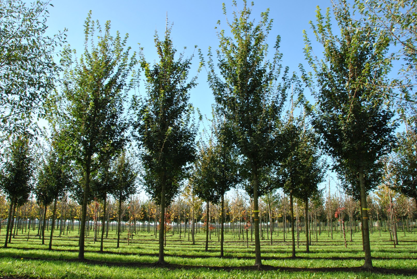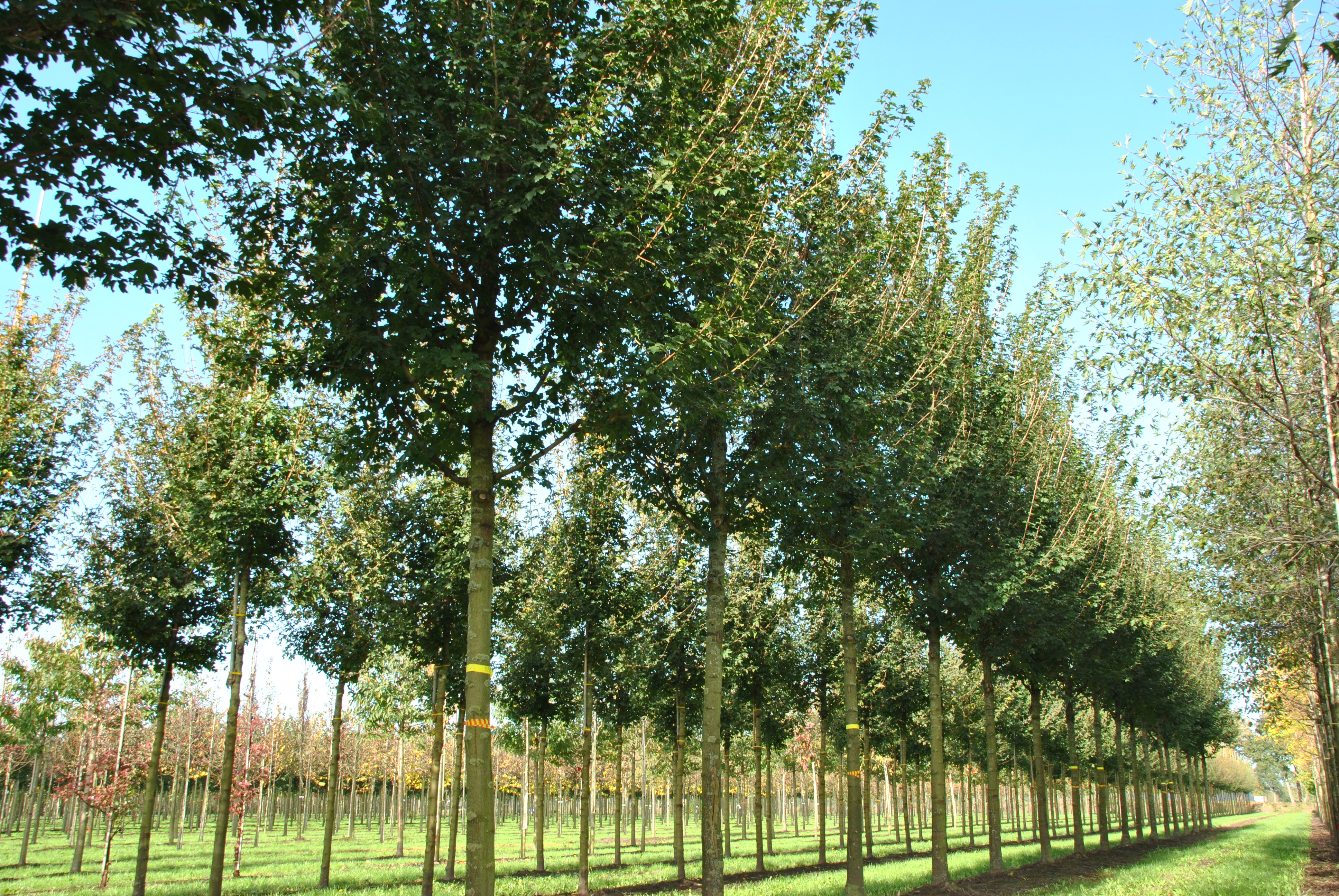 Medium-sized tree with a wide, open crown, branches have a crotch angle of 45 degrees. Unlike ‘Elsrijk’, ‘Queen Elizabeth’ is less tolerant to hard surfaces. In green borders and road shoulders ‘Queen Elizabeth’ grows excellently and provides a more uniform image than A. campestre. The leaves are shiny dark green and have round lobes. The autumn colour is deep yellow. At an early age the plant is slightly sensitive to mildew, but after some time this sensitivity decreases. The plant forms a strongly branching main root with very many hair roots. ‘Queen Elizabeth’ is a decorative tree, which, applied in the right way, can stand out beautifully.