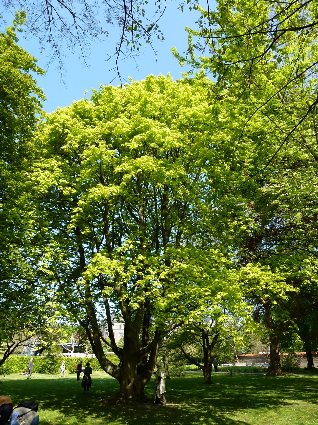 With regard to the growth habit this cultivar strongly resembles the species, but the main difference is the colour of the leaf. When unfolding the leaf is deep purple, afterwards it turns quickly into bright yellow. During summer the leaf turns light green and in autumn it turns back to yellow again. Unfortunately the juvenile foliage is slightly sensitive to scorching in sunny periods in spring and early summer. The tree is not tolerant to very dry soil, nor a soil with a high pH. In a lightly shady site 'Areum' can grow into a spectacular avenue tree in wide streets or as a solitary in parks.