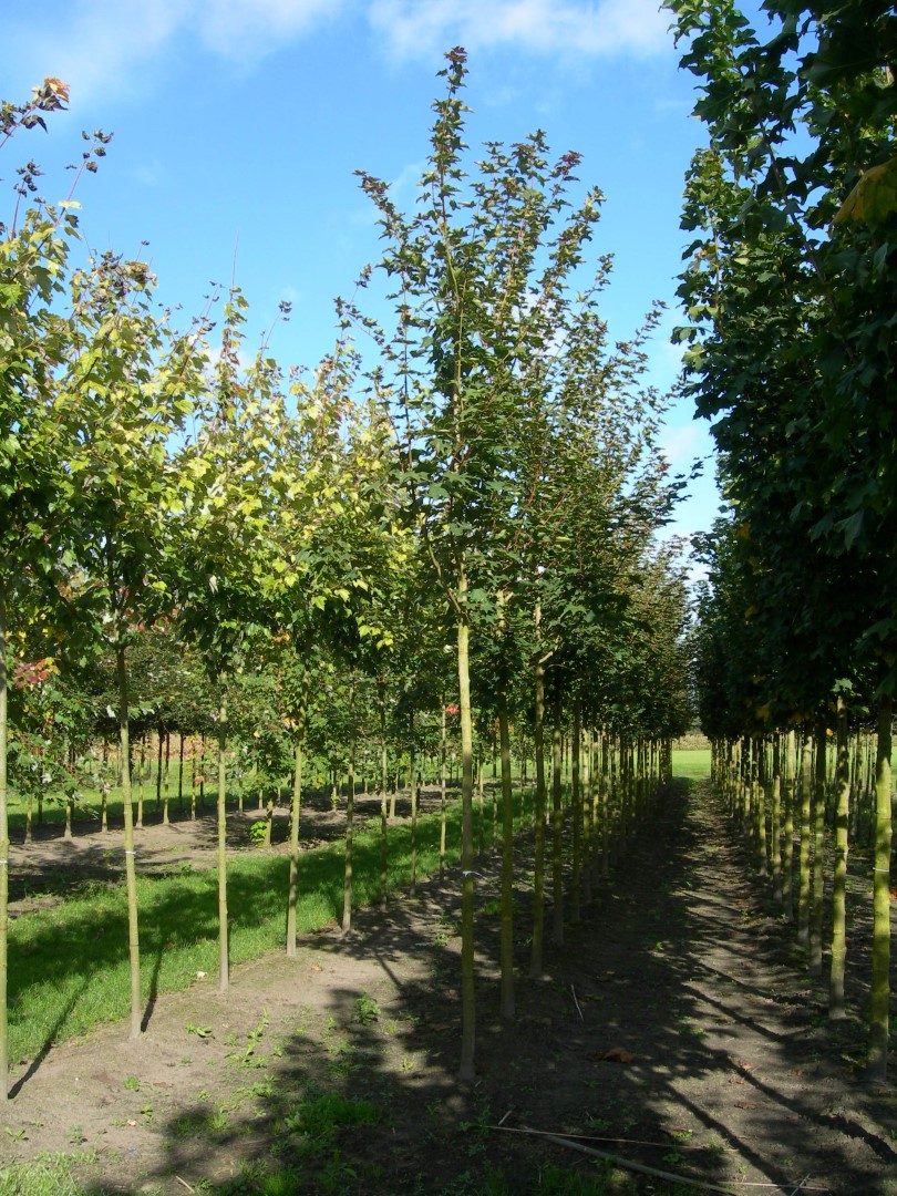 This medium-sized tree is in all aspects and characteristics akin to the previously described 'Aureum'. The only difference is the colour of the leaves. The juvenile foliage of 'Rubrum' is deep purple-red and turns to a dark reddish green during summer. In autumn the leaves turn deep yellow. Unlike the yellow leaves of 'Aureum', 'Rubrum' is insensitive to scorch during sunny periods in summer. 'Rubrum' is an excellent street and park tree, but is less tolerant to hard surfaces than the yellow-leaved 'Aureum'.
