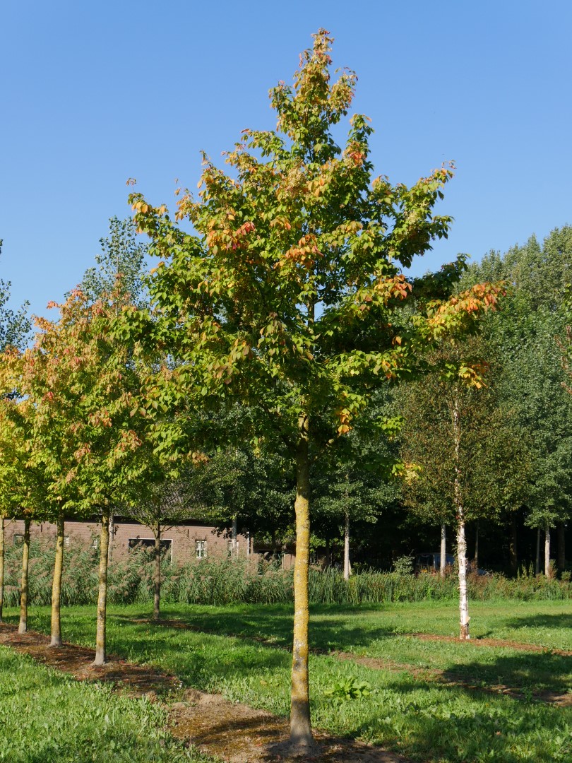 From large shrub to small tree. Because of the horizontal branching the crown is flattened and wide. The red brown spots on the young twigs disappear in maturity. The leaves have three leaflets and a slightly red hue. The margins of the leaf are gently serrated. The autumn colour is orange-red with yellow varieties. Unlike many maples the A. cissifolium has a conspicuous flowering. The small, monoecious, flowers are yellow and stand together in clusters. Remarkably, the fruits usually do not have germination capacity because male and female plants have to be planted together for pollination. A. cissifolium is slightly sensitive to a high pH and thrives best in acid soil. Although this tree is usually grown as a shrub , it can be very functional as an avenue tree, on squares and in small(er) gardens.
