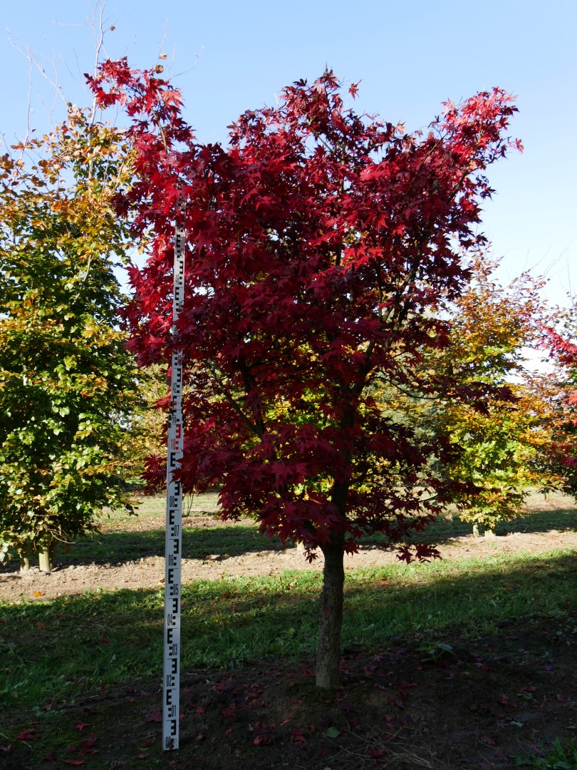 Acer palmatum 'Ôsakazuki' can eventually reach a height of 4 - 8 m, depending on the site and climate conditions.