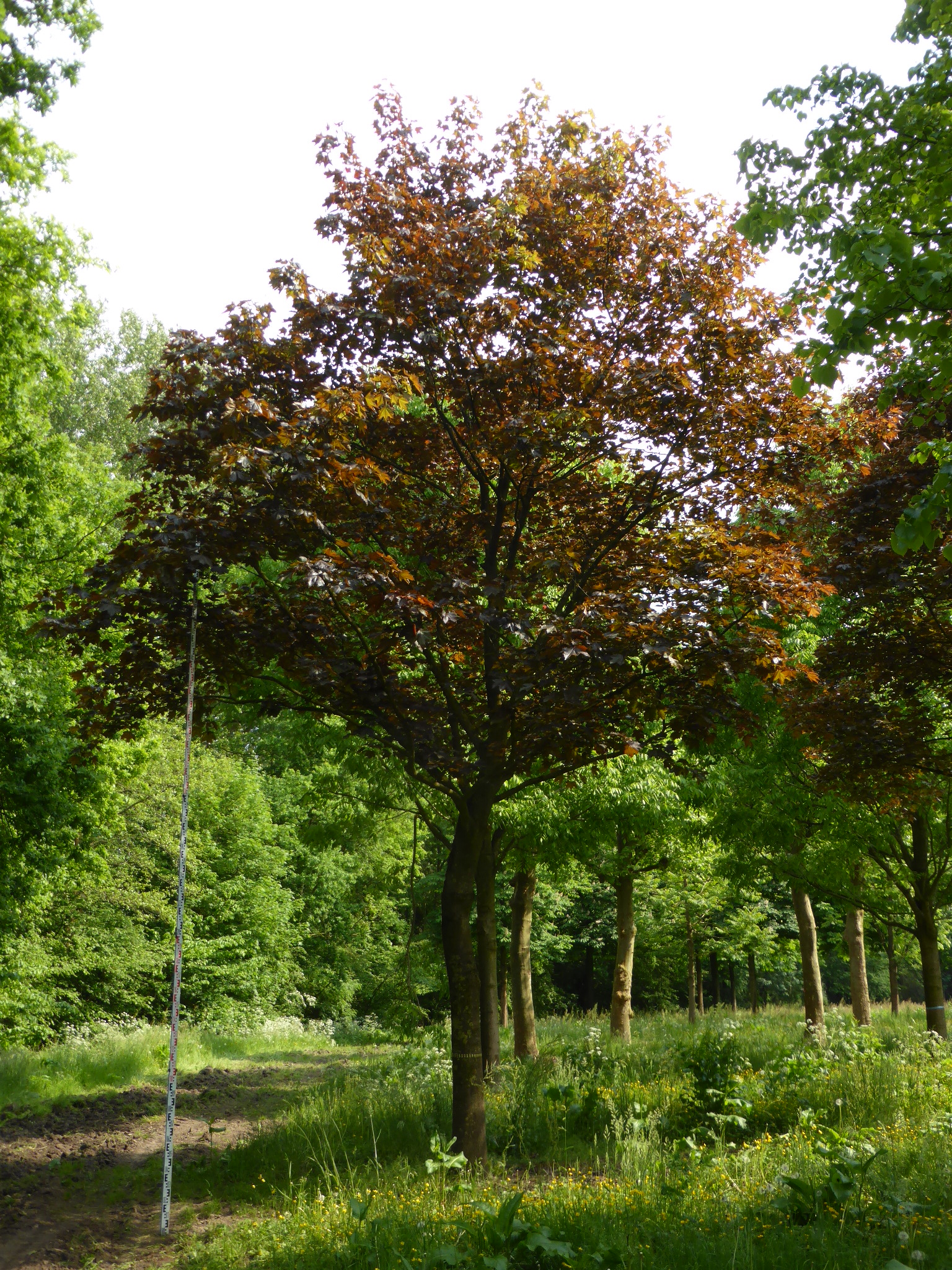 Acer platanoides 'Faassen's Black' can eventually reach a height of 12 - 15 (20) m, depending on the site and climate conditions.
