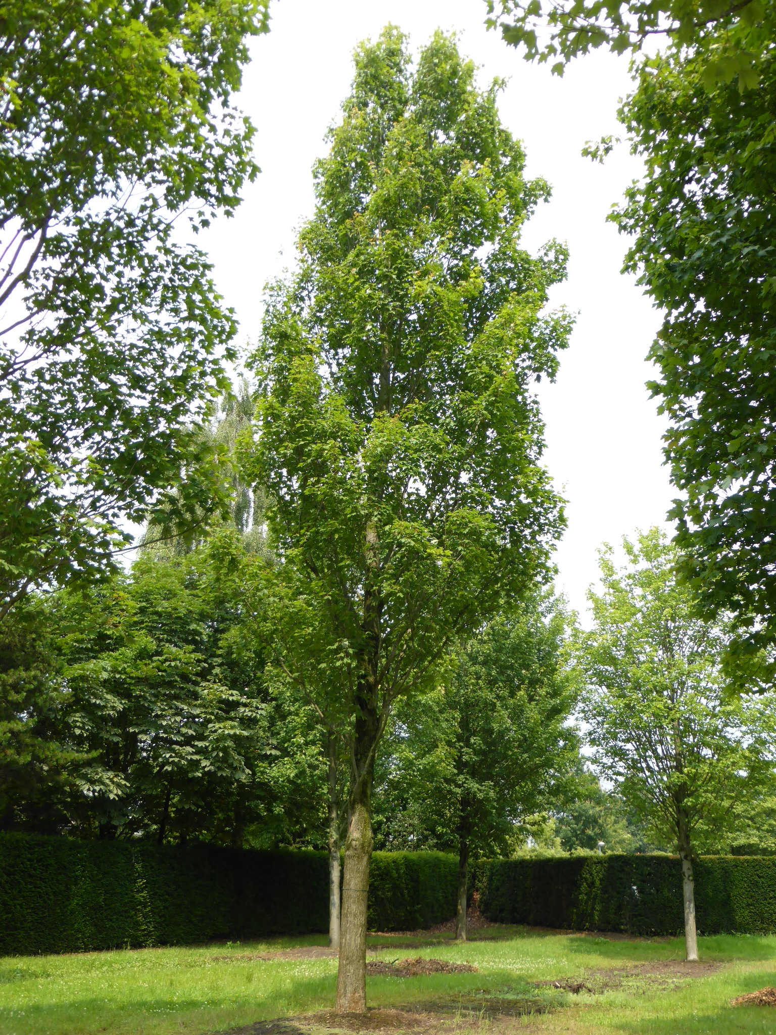 One of the first selections in Acer Rubrum made by Scanlon. ‘Gerling’ grows in a columnar pattern but later in life the crown droops slightly to form a narrow ovoid. The leaves are typical of the species. The autumn colour is orange and not very spectacular compared with the intense colours of other cultivars. However, the nicely narrow crown and regular growth pattern make it a very useful tree for avenues and streets. Its growth will stagnate on calcareous soil. In such soil, as with very dry soil, the autumn change of colour will be less noticeable. Intolerant to (sea) wind.