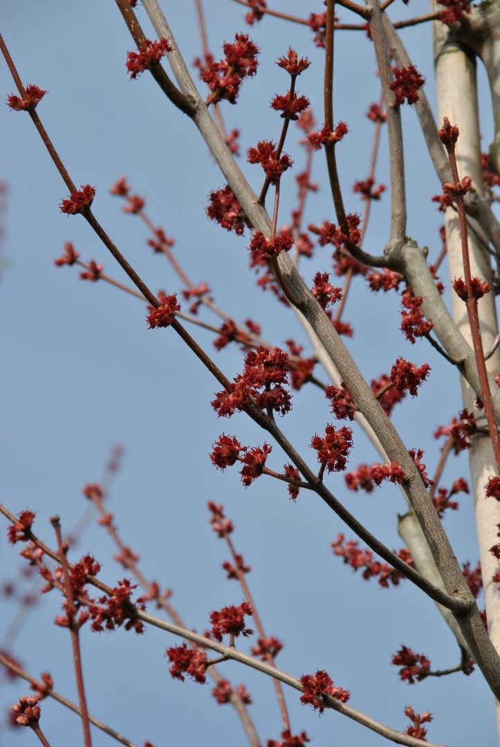 Acer rubrum RED SUNSET ('Franksred') blooms in march.