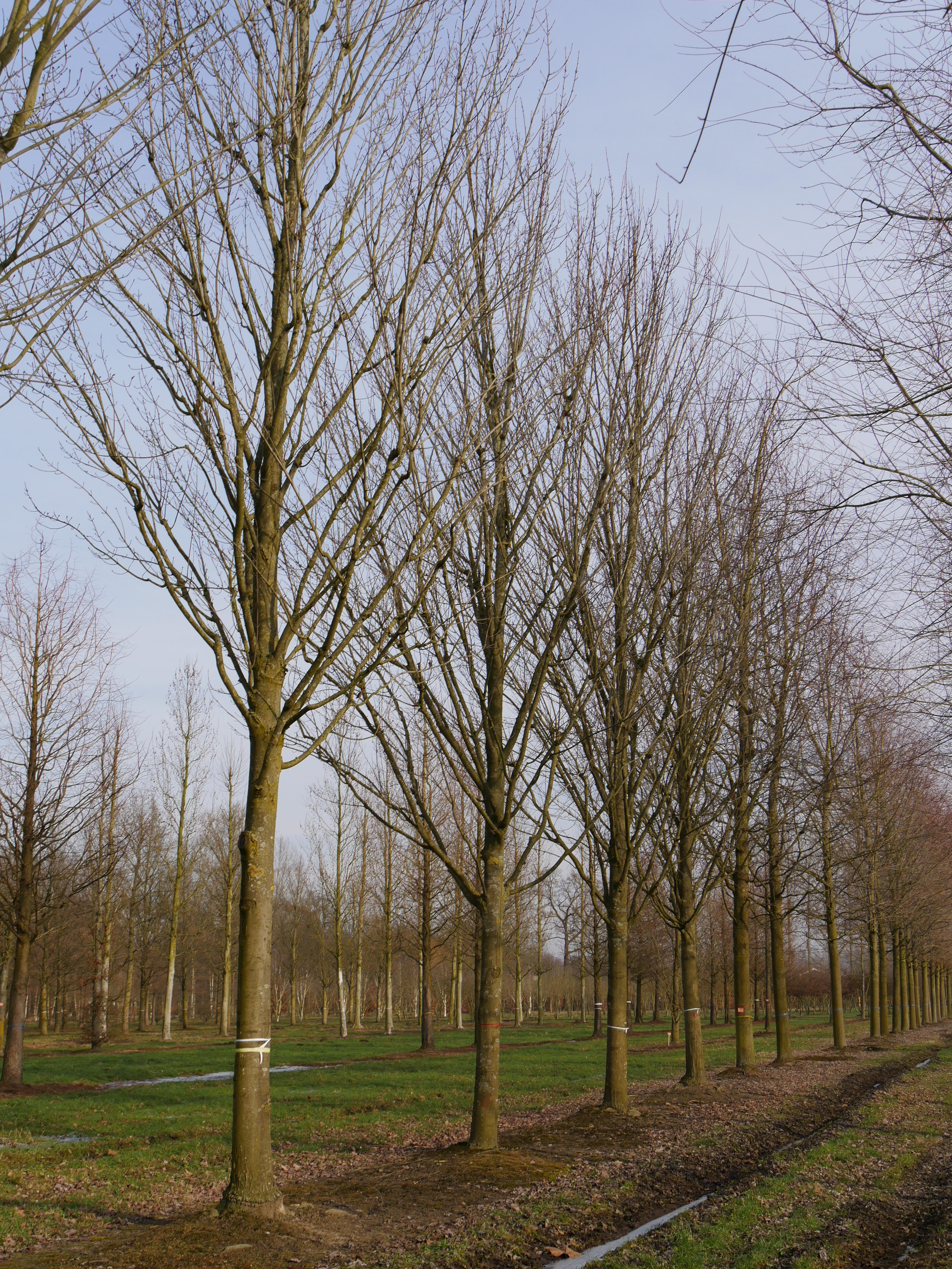 American selection with a closed, oval to globe-like crown. This makes it less suitable for narrow streets and small gardens. Height circa 12 m. Young twigs are red-brown. The leaf stalk is red too. The bright green leaf is smaller than of the species: ca 8 cm. The underside is blue-green. In autumn the orange-red hues are less distinctive than of the species. The red flowers emerge before the leaves appear. The tree has a heavy main root with fibrous rootlets. In limy soil and dry soil, the growth stunts and no autumn colouring will occur. Though 'Tilford' is poorly sea wind resistant, it is best applied in coastal areas. Winter hardiness zone: 4