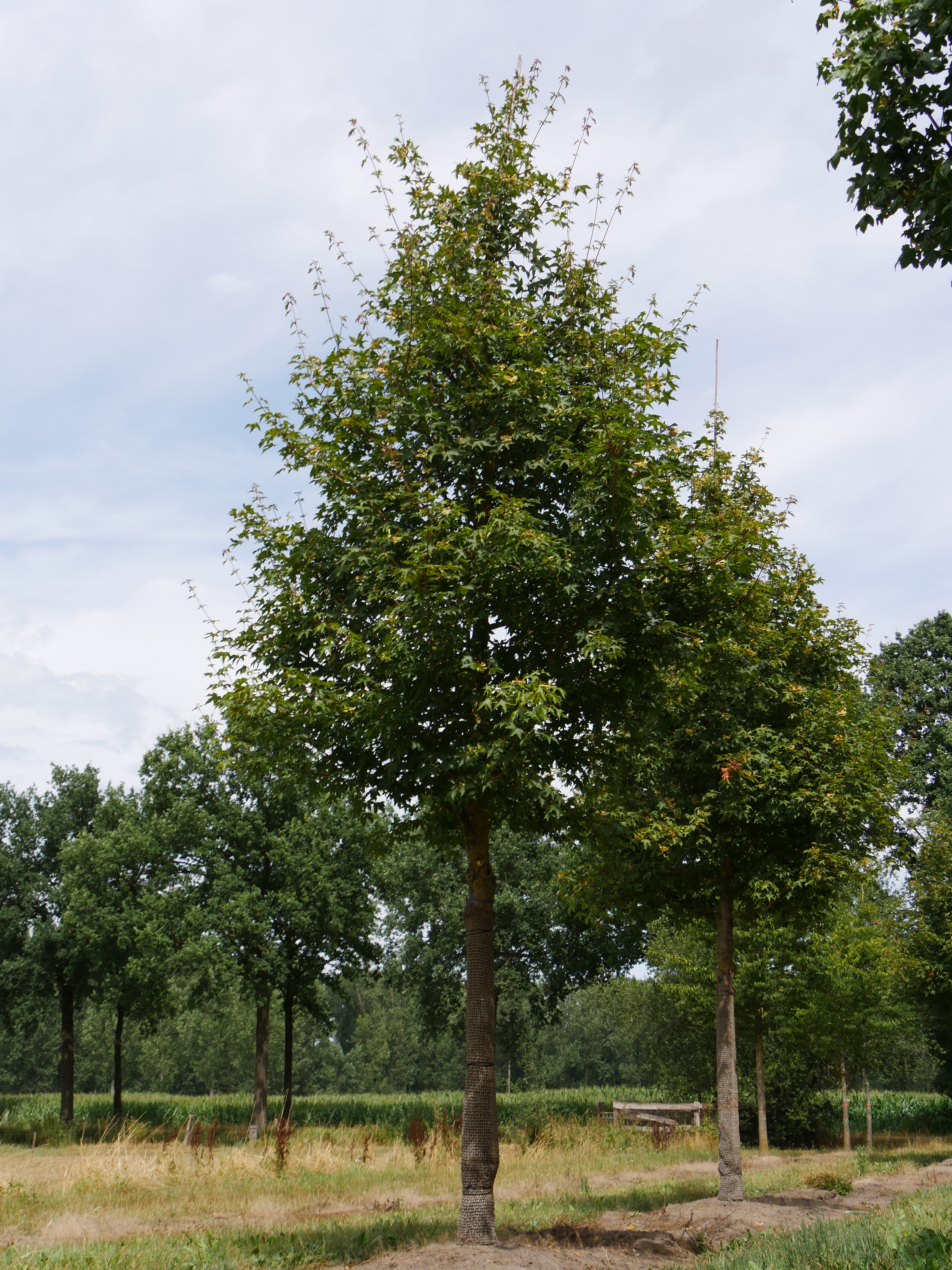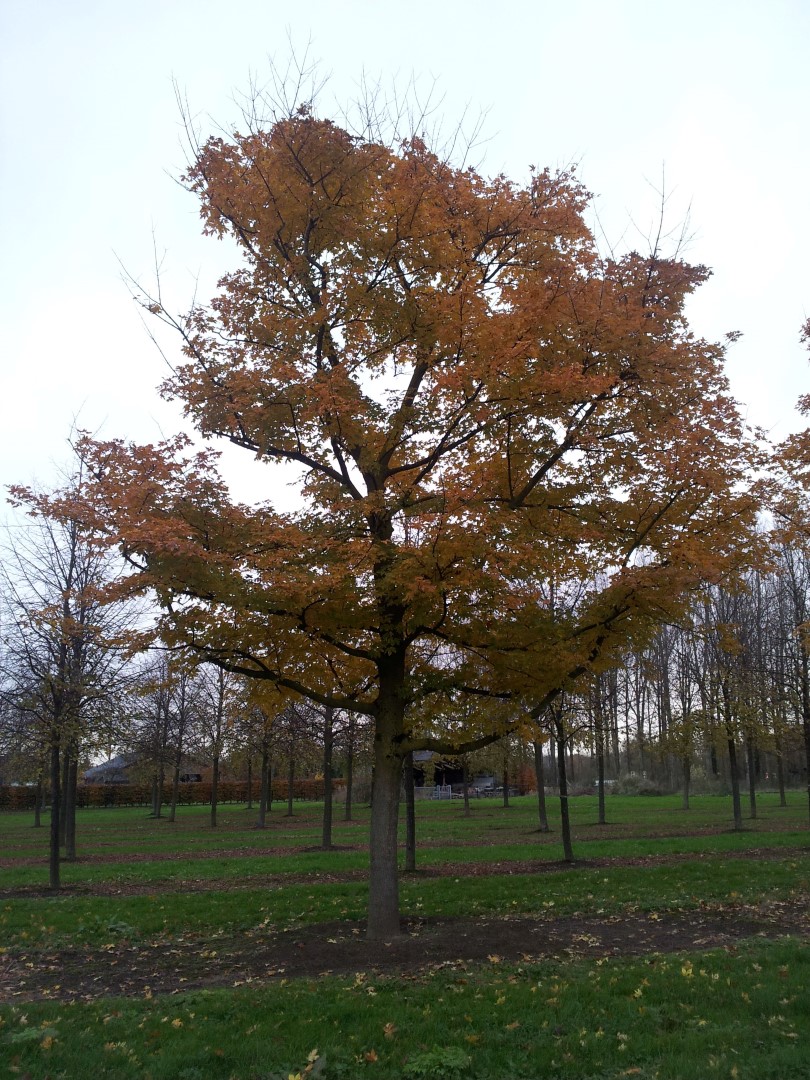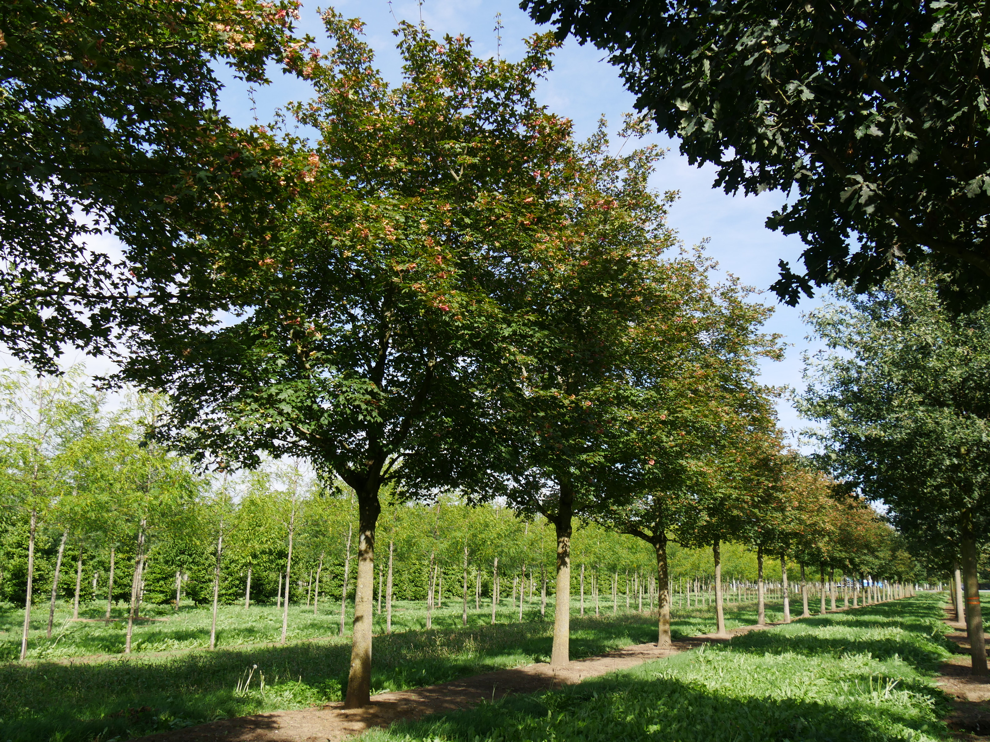 This medium-sized tree is a hybrid between A. campestre and A. cappadocicum subsp. lobelii. A. zoeschense 'Annae' has an open, almost spherical crown. The tree has a regular, layered habit and can reach a height of circa 10 m. The young and slender twigs that receive sufficient sunlight, turn a striking red-brown. Mature branches have a grey-brown colour. A. zoeschense 'Annae' does not form corky fissures on its twigs. The leaf, slightly resembling A. campestre, unfurls dark purple, fading gradually into dark green. The leaf margin is slightly more curvaceous than of the A. campestre and is a little larger. Important ornamental feature is the autumn colouring of the glossy, dark green leaf into many red to orange hues. In a sunny site it often stands out better. The fibrous root growth is shallow. Good resistance to air pollution and insensitive to diseases and pests.