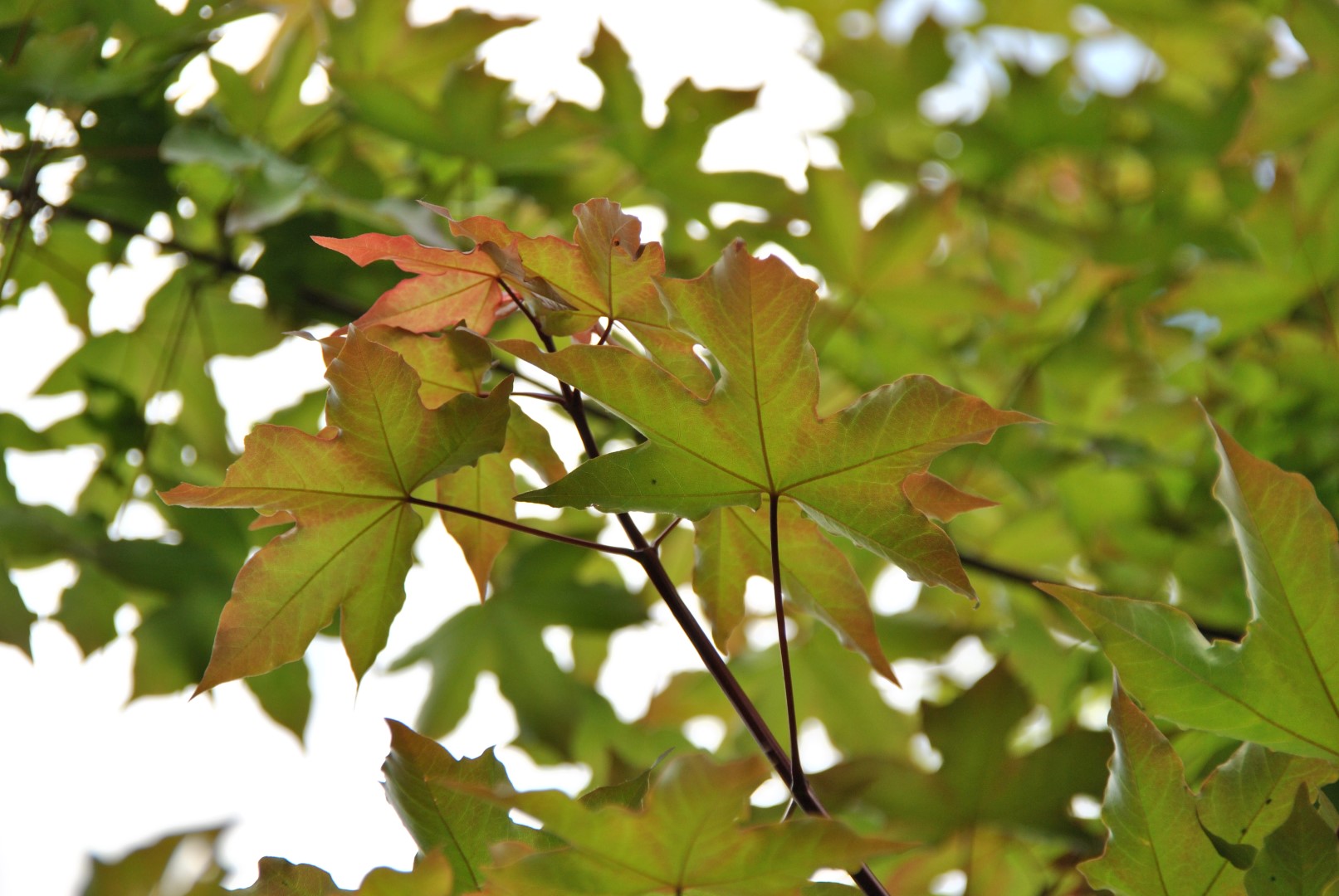 The leaves of Acer ×zoeschense 'Annae' turn orange, red in autumn.