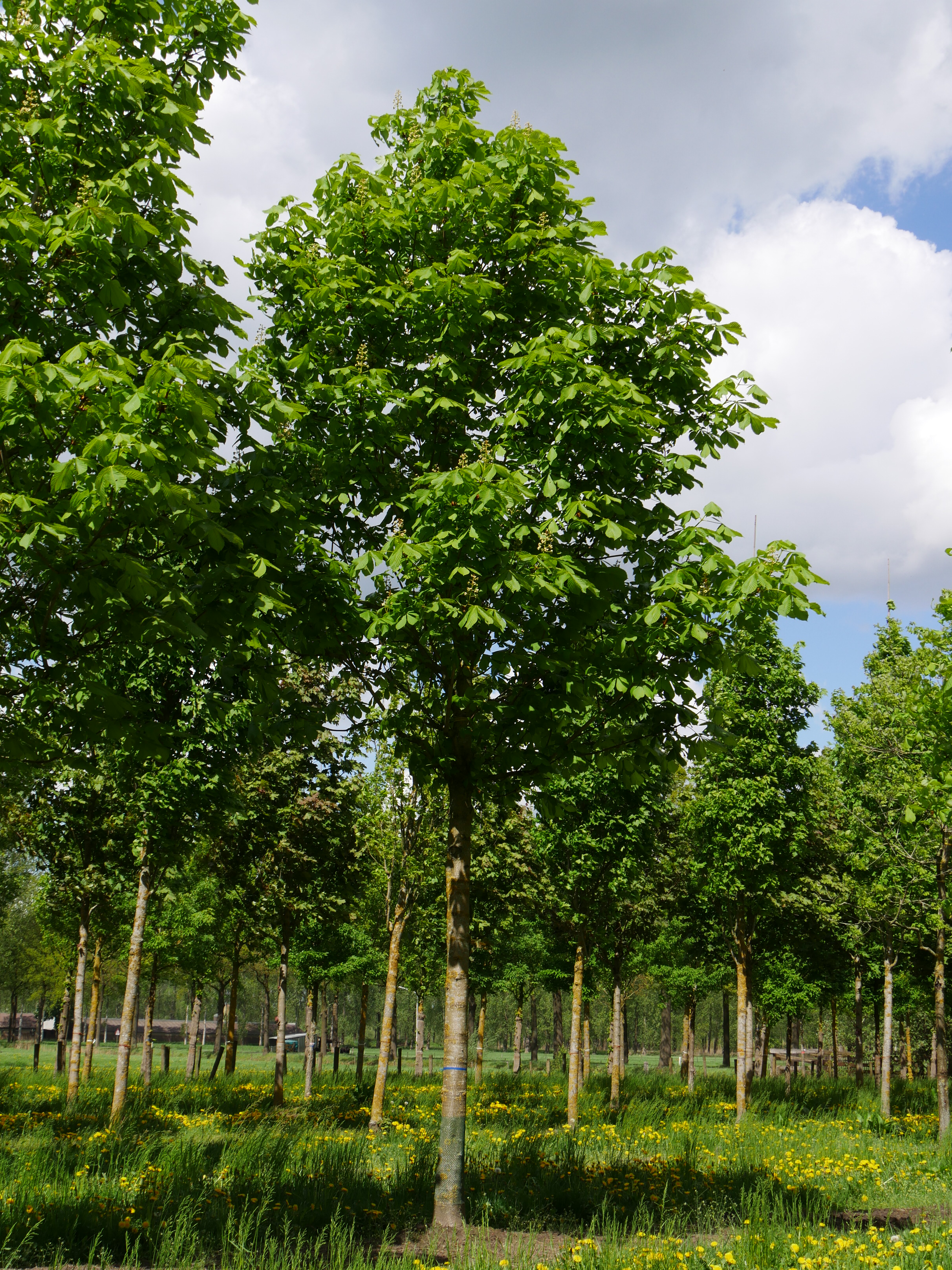 Aesculus hippocastanum 'Baumannii' can eventually reach a height of 20 - 25 m , fast growing, depending on the site and climate conditions.