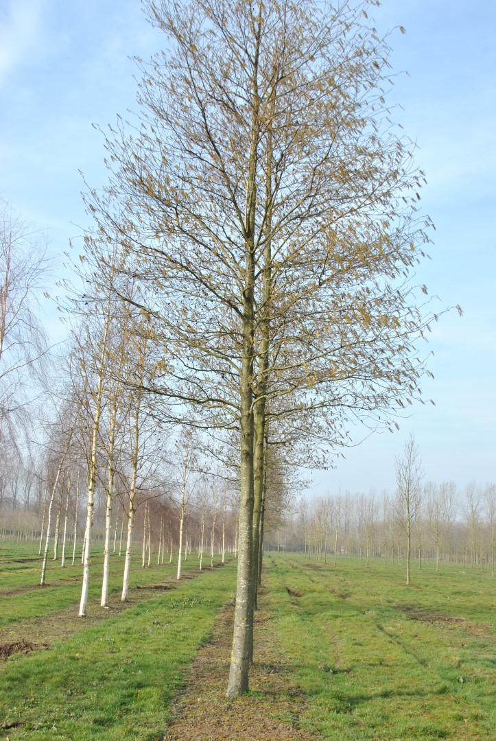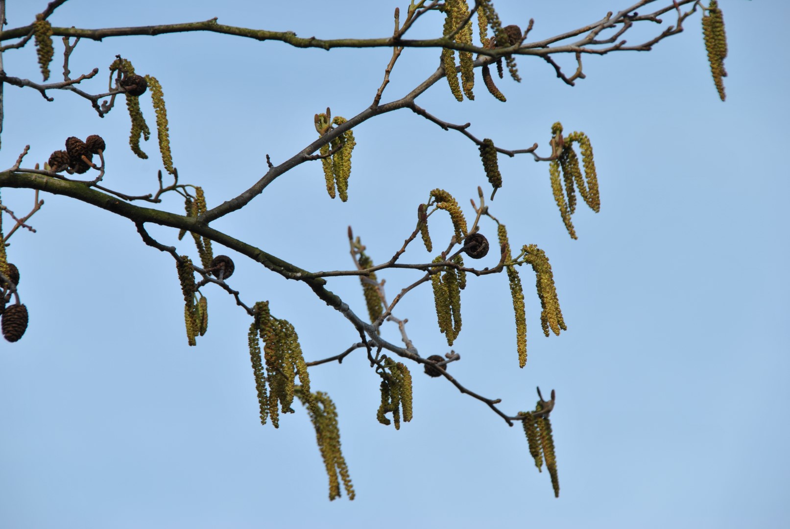 Alnus cordata is indigenous in Italy and parts of Greece. It is a fast-grower that can eventually attain a height of 15 m. The almost horizontal growth of the side branches is characteristic. From the scattered buds, on short stalks, the leaves appear. They are heart-shaped and 12 cm long. The topside is green and glossy. In autumn they remain long on the tree. As soon as winter ends the female and male, pendulous catkins appear. They are followed by the familiar strobiles, which, arranged in clusters, appear from September onwards and remain on the tree all winter. The tree is shallow-rooting and not deep with many delicate rootlets. Little susceptible to sea wind, tolerant to paving.