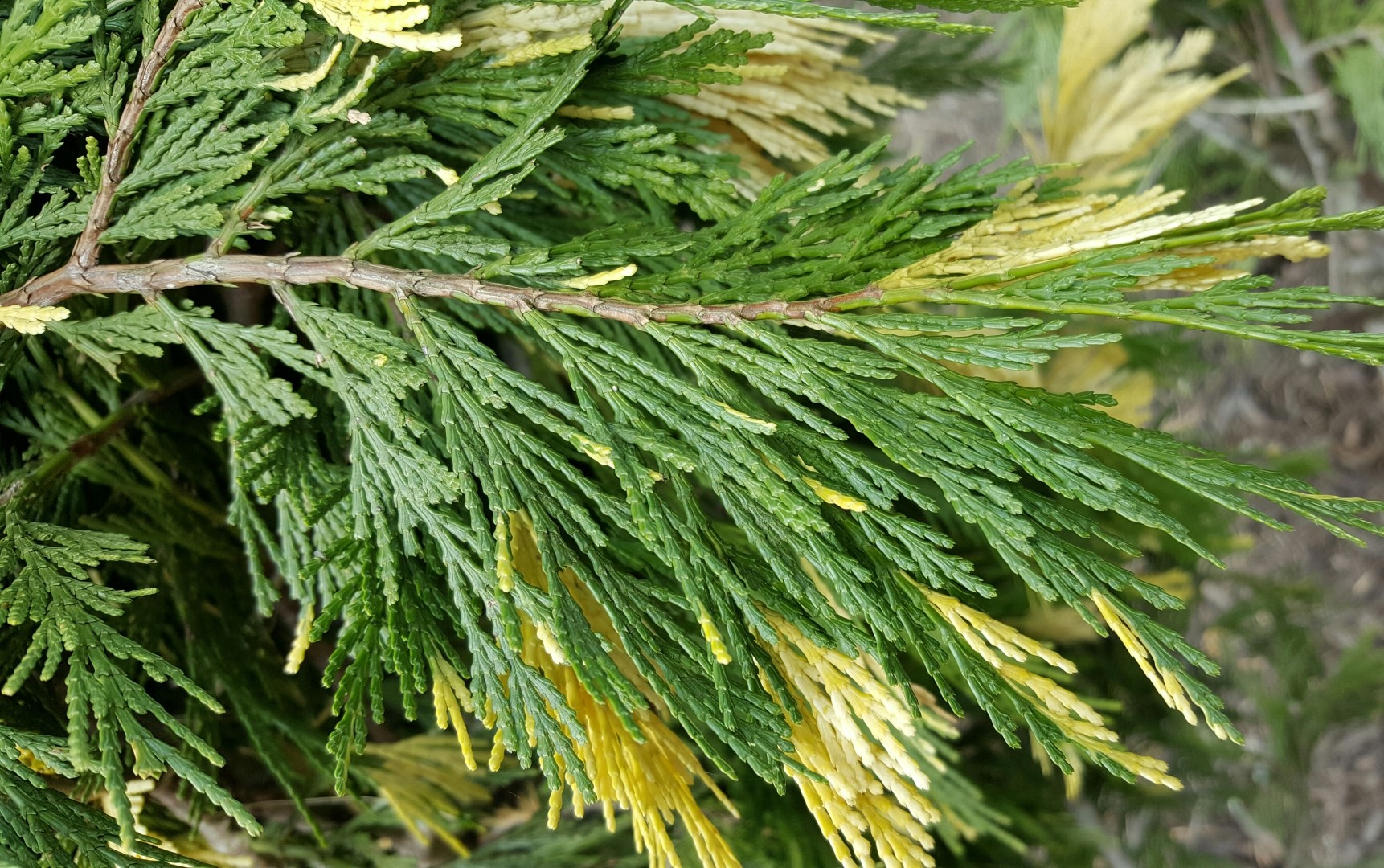 Calocedrus decurrens 'Aureovariegata' blooms in may.