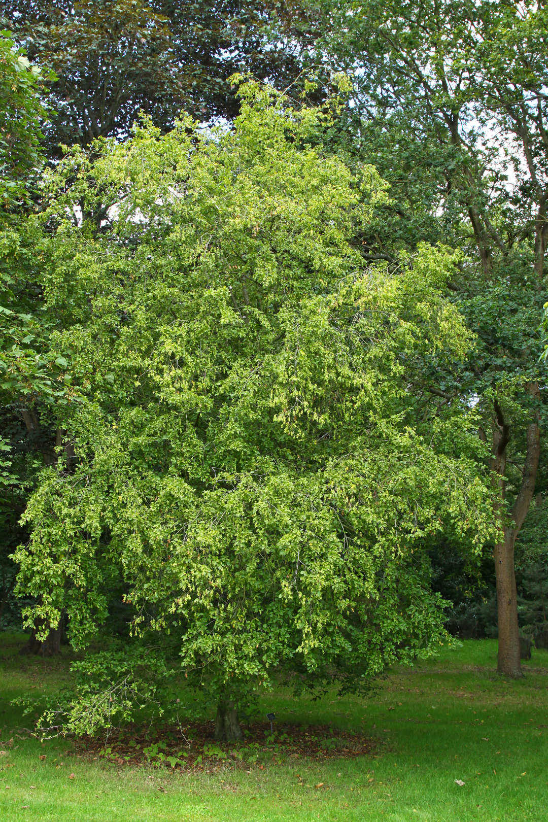 Very variable, large shrub to small tree with graceful, overhanging branches. The crown form varies from a very flattened spherical to round. The leaves are deeply veined, dark green on top and conspicuously lighter green on the underside. No remarkable autumn colours. The flower catkins are inconspicuous, but the light green fruiting catkins consist of relatively large bracts. In general, many fruiting catkins are formed. Root growth is relatively close to the surface. Has few soil requirements but flourishes best in loamy soils. Tolerates drought. Carpinus coreana probably has the variety status of C. turczaninowii, so a change of nomenclature can be expected.