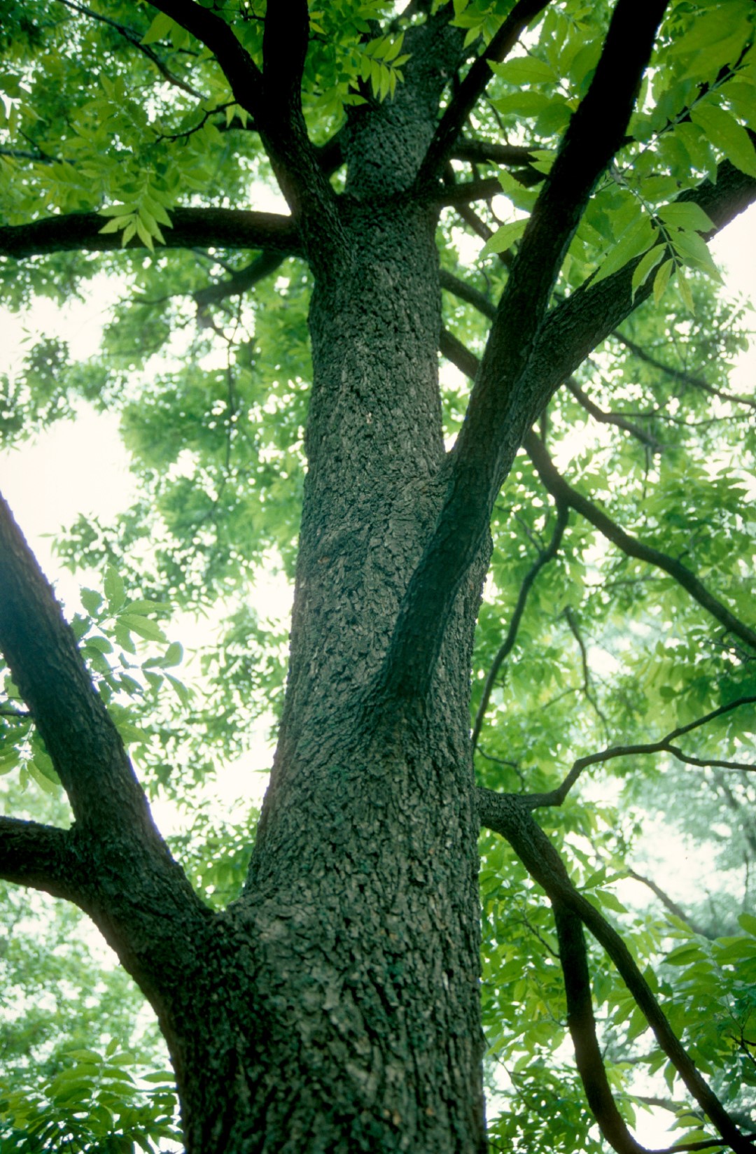 Large park tree with a round, very broad crown of overhanging side branches: can attain over 30 m height and breadth. The imparipinnate leaves are very large and have the most numerous leaf segments of all Carya types. These leaf segments are elongated to somewhat sickle-shaped, with long, pointed tips. Autumn colour yellow-brown. The inconspicuous blossoms are followed by bunches of edible fruit. These nestle in elongated husks with narrow wings. Very important crop in the USA, where over 100 varieties are cultivated. The tree is deep-rooting and prefers humic, well-drained soil. Its early growth may be impeded by frost. Can tolerate a lot of moisture for a while.