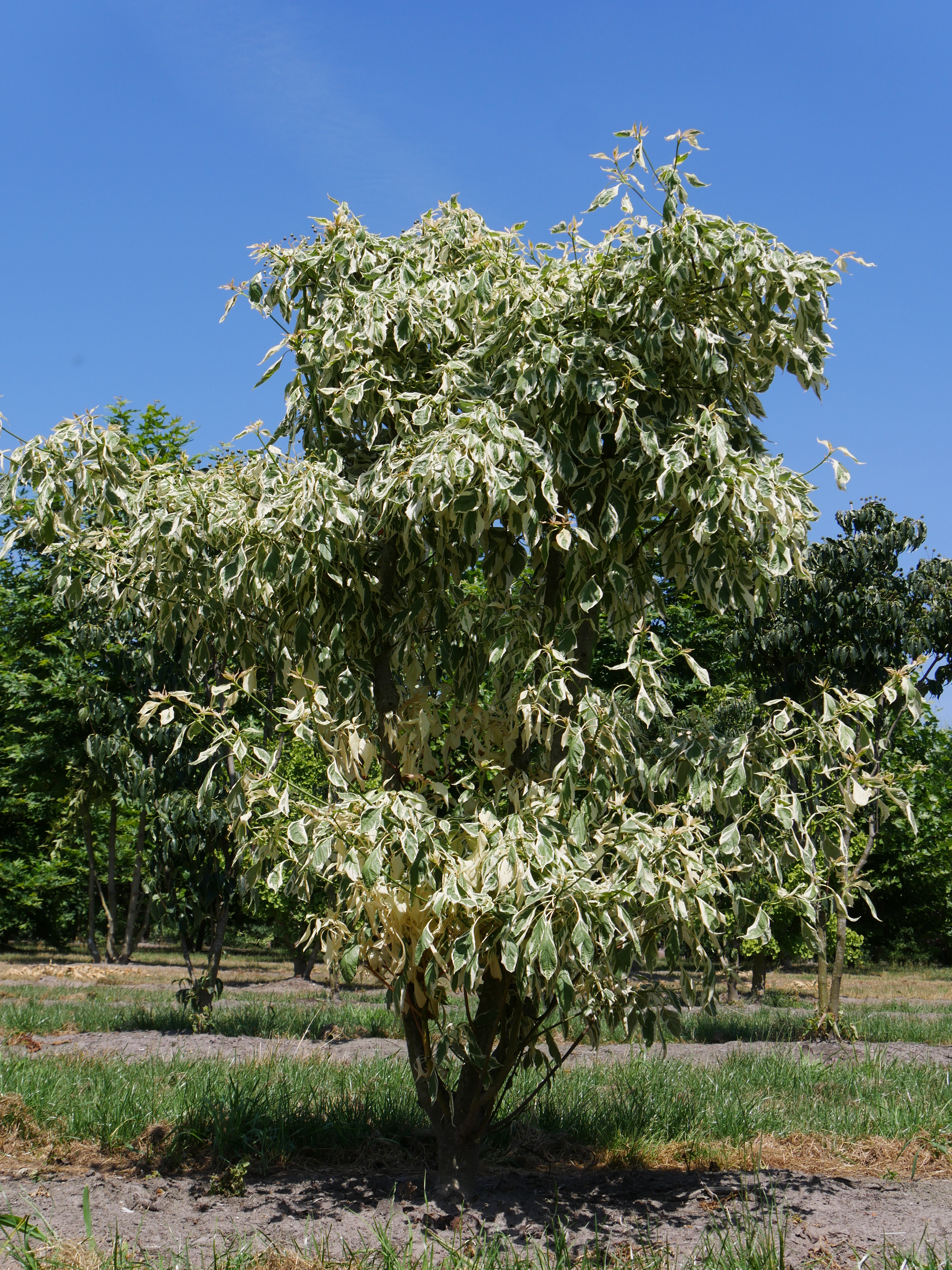 Cornus controversa 'Variegata' can eventually reach a height of 5 - 7 (10) m, depending on the site and climate conditions.