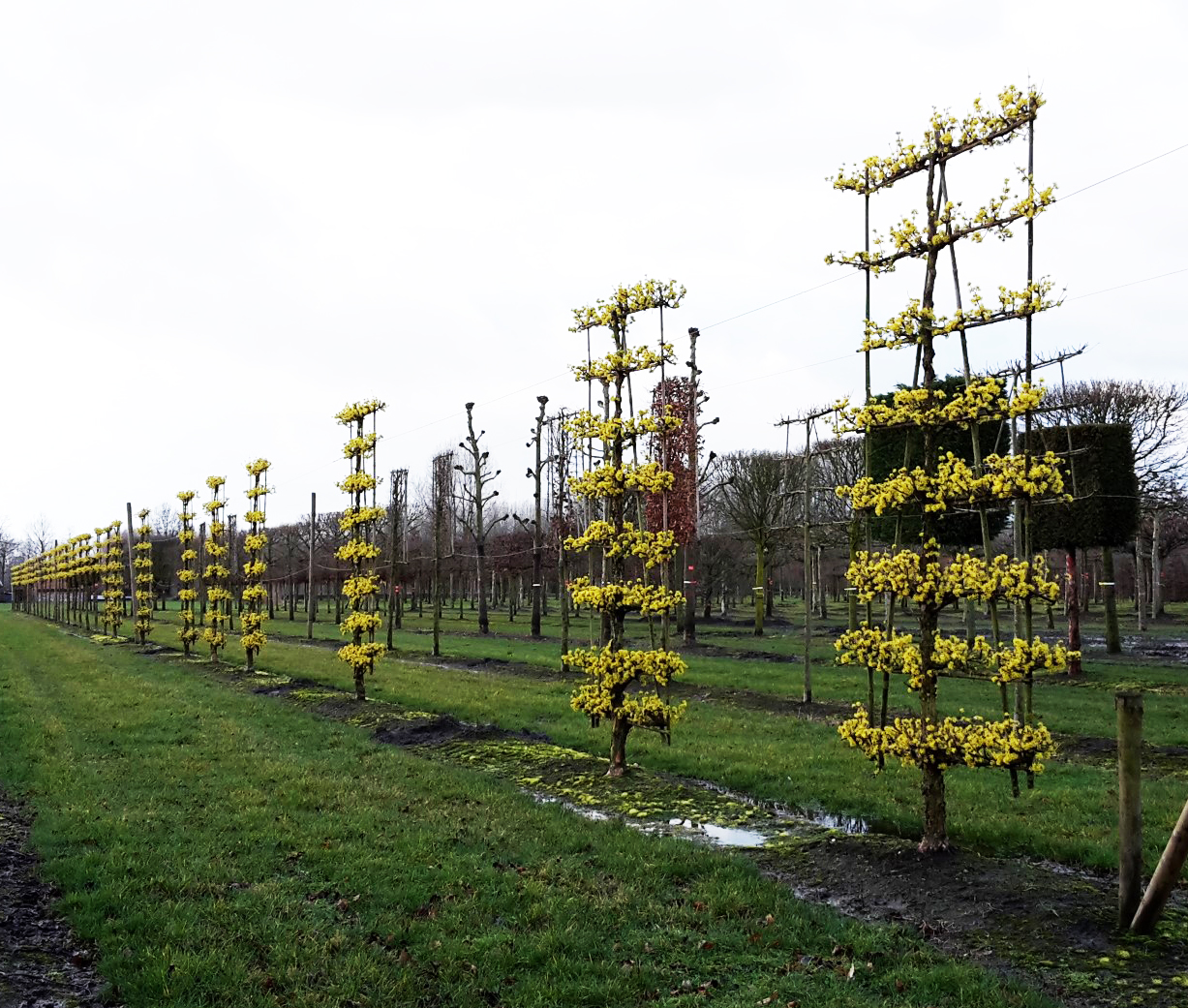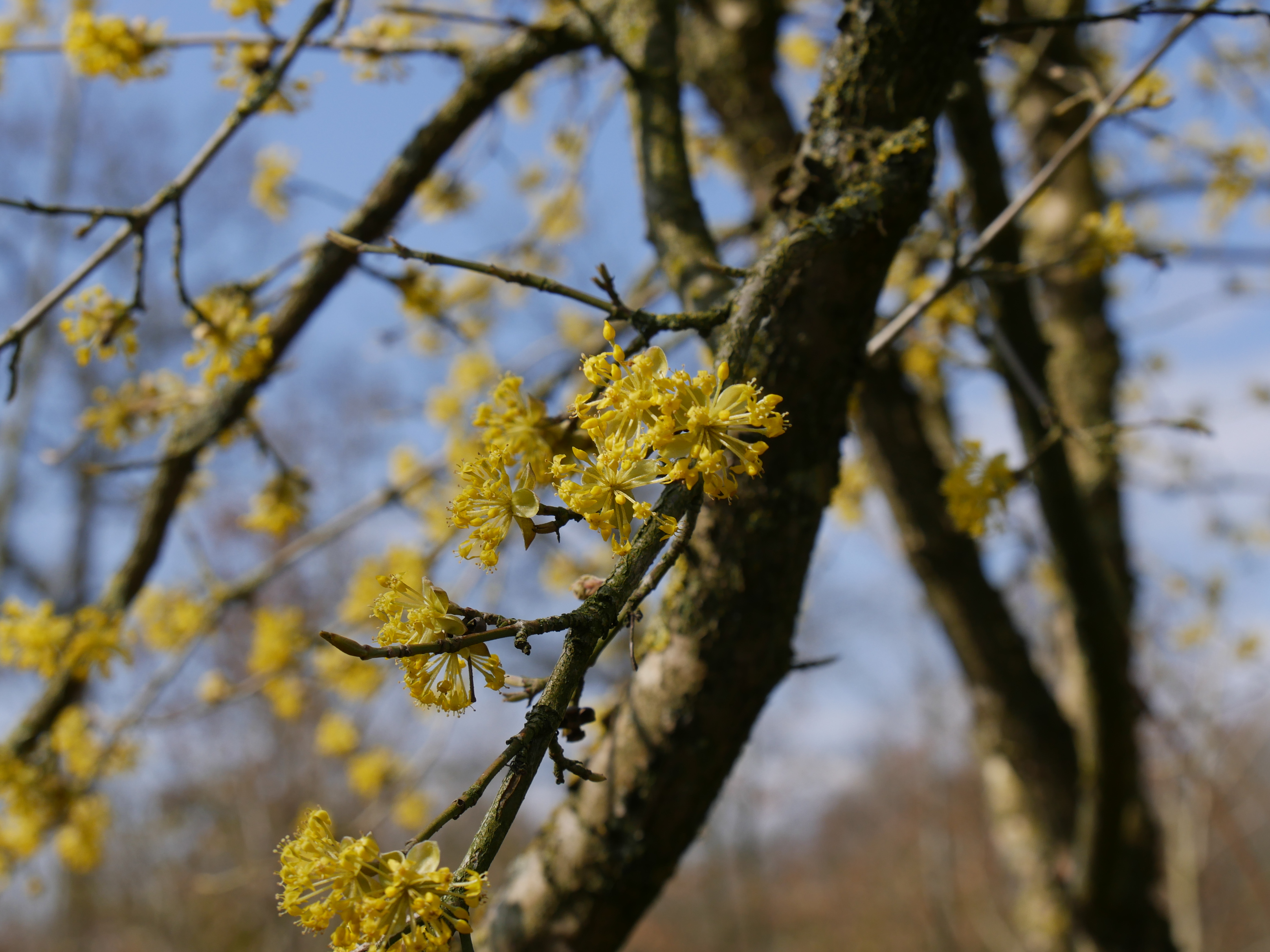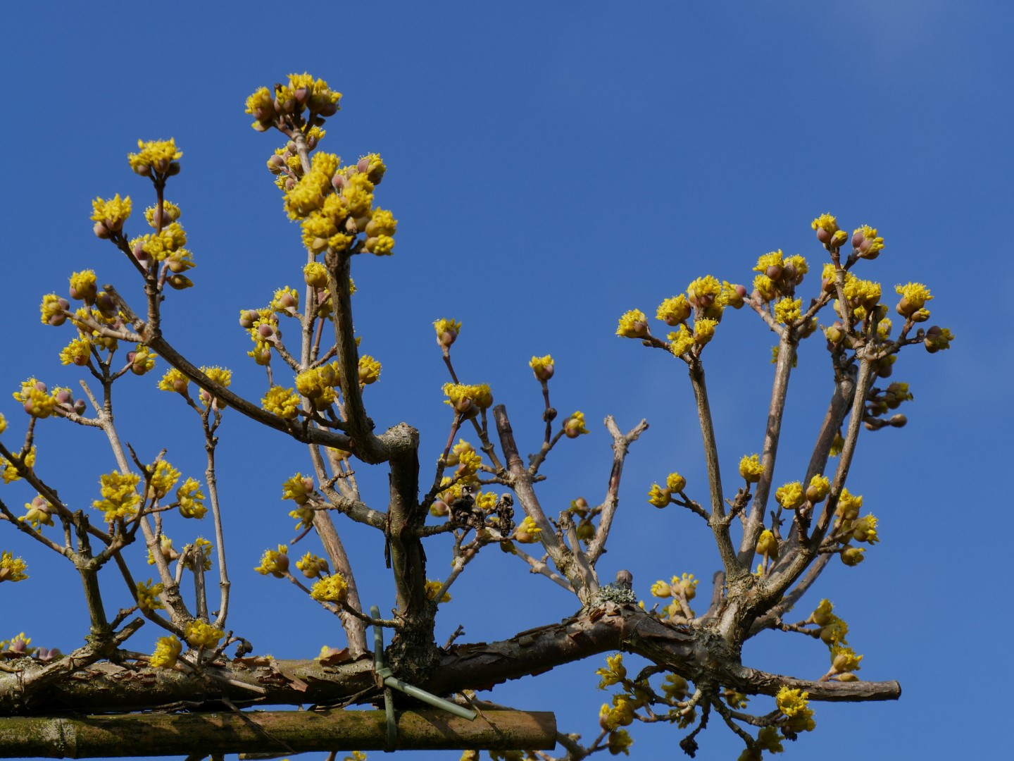 Cornus officinalis 'Robin's Pride' blooms in february, march.