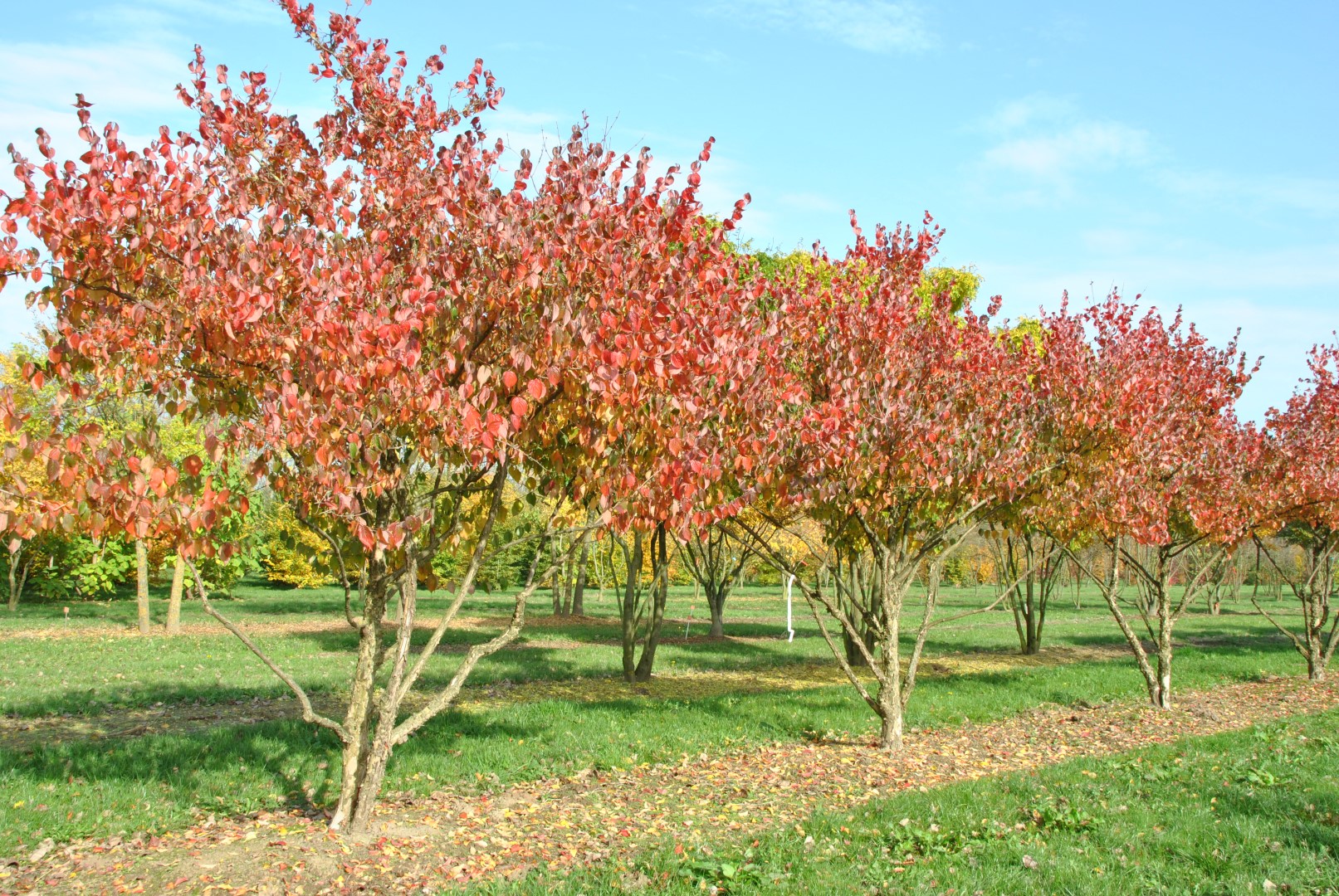 Medium-size tree up to about 8 m, initially with a pyramidal crown that later becomes a broad ovoid. Due to the rather spreading lateral branches when mature, the crown will eventually become nearly round. The bright green leaves turn bright red in autumn. The yellow flowers are grouped in small umbels and open around mid-February. The tree is best regarded as the Asiatic counterpart of C. mas. The main difference is that the leaves of C. officinalis have 6 - 7 lateral veins instead of 3 - 5, and the young twigs are brown instead of green. Also, C. officinalis blossoms about a week earlier than C. mas. The tree demands a fairly dry, preferably warm position in limy, light clay or sandy soil.