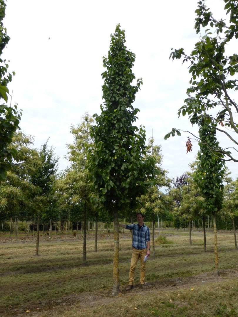 Corylus colurna 'VDB Obelisk' can eventually reach a height of 10 - 12 m, depending on the site and climate conditions.