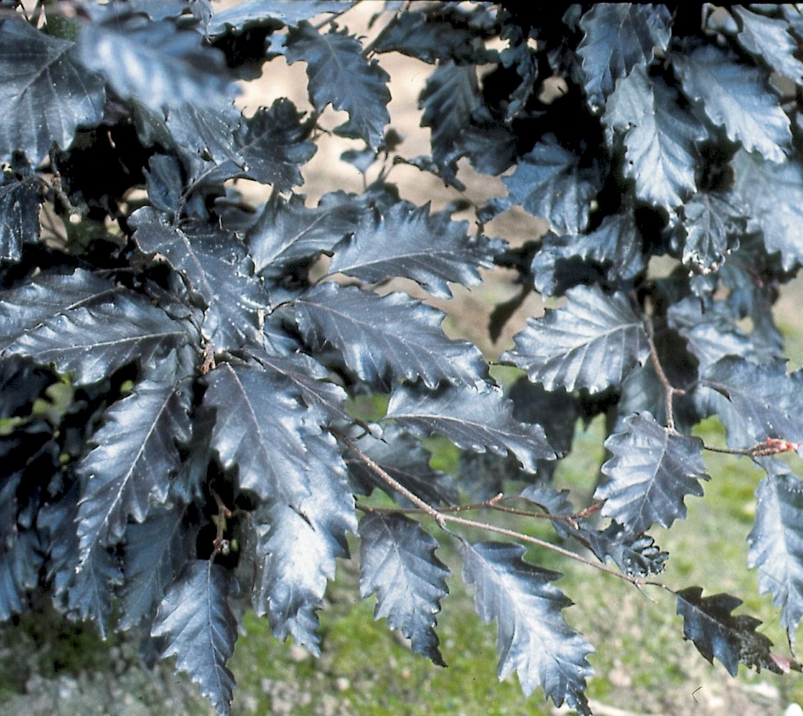 Fagus sylvatica 'Rohan Trompenburg' is a seedling from 'Rohanii'. Height 10 - 15 m, shape of crown is round. The brown-red leaf is oblong-ovate and moderately to deeply dissected with rounded lobes. With regard to its leaf 'Rohan Trompenburg' resembles 'Rohanii', but it grows distinctly stronger. Sometimes the leaf assumes the shape of 'Grandidentata'. The leaf unfolds bright red, slightly sooner than F. sylvatica, leaf size 4 - 10 cm. Also the second shoot is strikingly red coloured. Park tree or solitary. Winter hardiness zone: 5b
