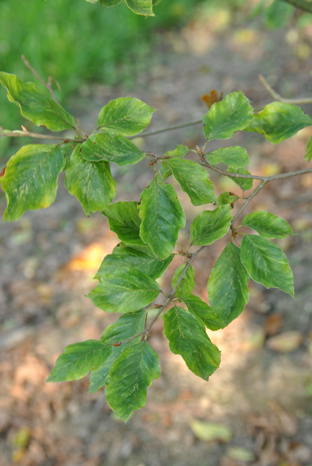 Fagus sylvatica 'Viridivariegata' attains a height of circa 15 - 20 cm and has a spreading ovoid to round crown. The only difference with the species being the colour of the leaf. 'Viridivariegata' has a dark-green leaf with strikingly light-green speckles, especially along the lateral veins. The glossy leaf reaches 4 - 10 cm in size and has an undulating margin. The autumn colour is yellow brown. The soft bark is smooth and grey. Blooms with small, inconspicuous flower catkins. Small nutlets appear in autumn. Park tree and solitary. It prefers not too wet, well-drained soil, high in humus content. Less tolerant to hard surfacing. Moderate wind resistance. Winter hardiness zone: 6a