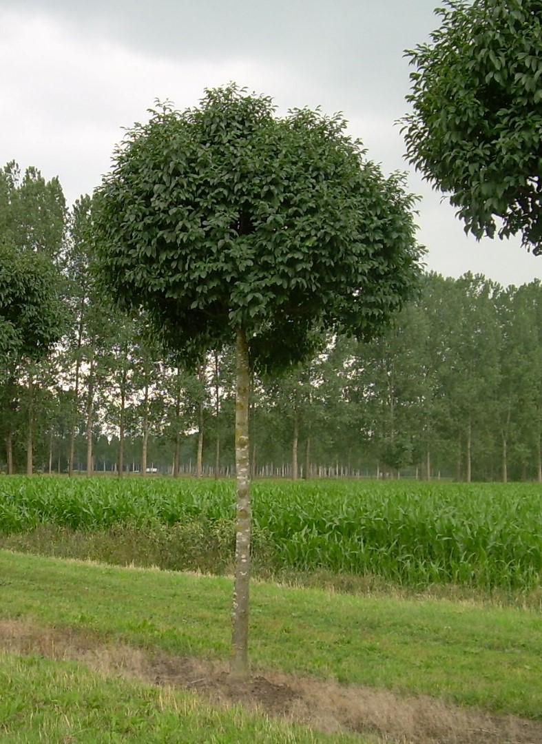 A selection of the Flowering Ash, found in Hungary in the Meczek mountains. The crown is spherical and 3 - 4 m across and the height of the crown depends on the graft union. The smooth grey bark turns to grey-black later. The odd-pinnate leaves are shiny dark green, 10 - 15 cm big and have 7 leaflets. In autumn they turn to golden yellow to purplish. The tree has white flowers in terminal panicles. Period of flowering May/June, after the leaf. After the flowering there is seldom any seed production. 'Meczek' can be applied in small gardens and in narrow avenues and streets and tolerates drier, calcareous soil. 'Meczek' withstands urban climates well and is fairly wind resistant.