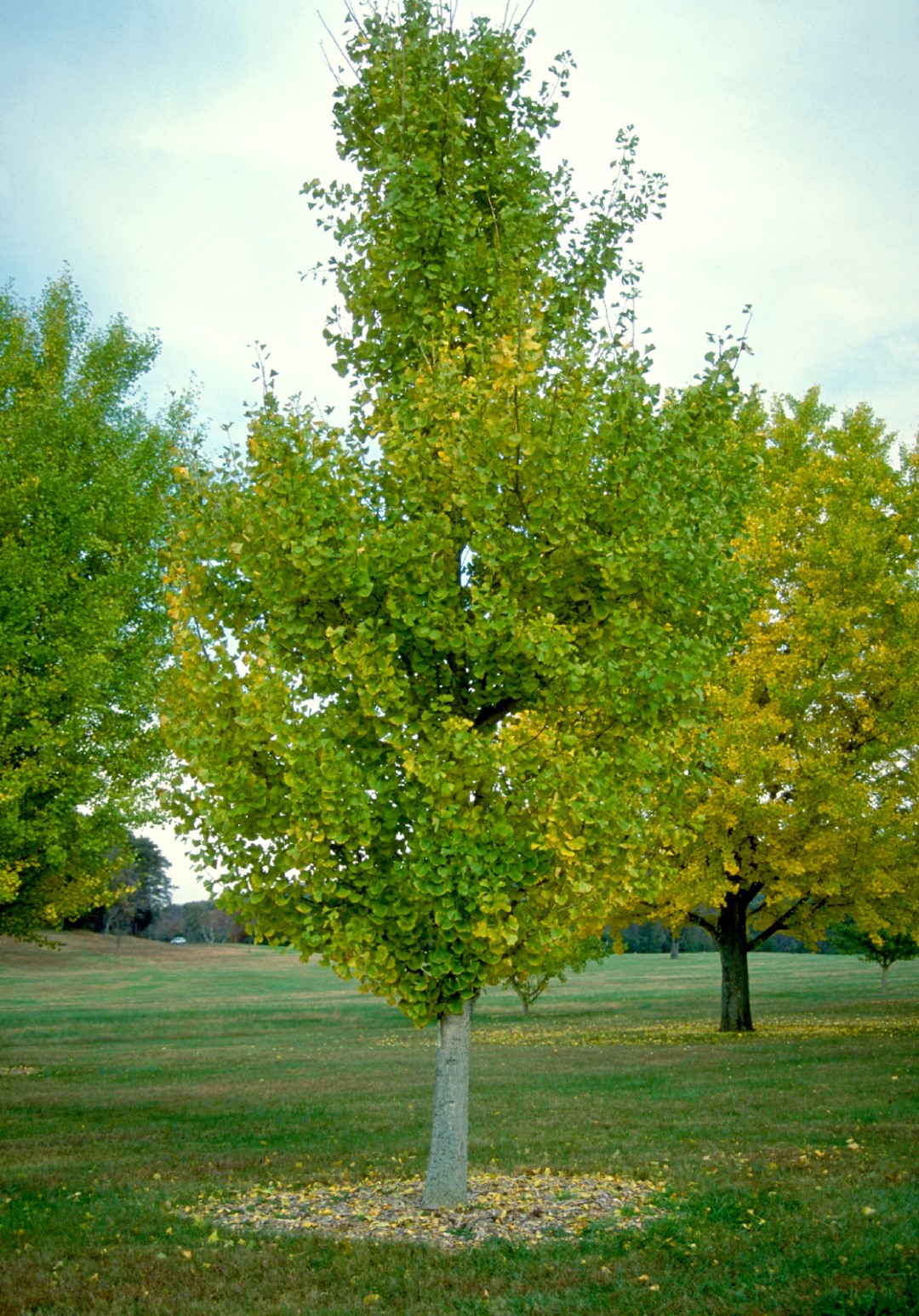 The leaves of Ginkgo biloba 'Princeton Sentry' turn yellow in autumn.