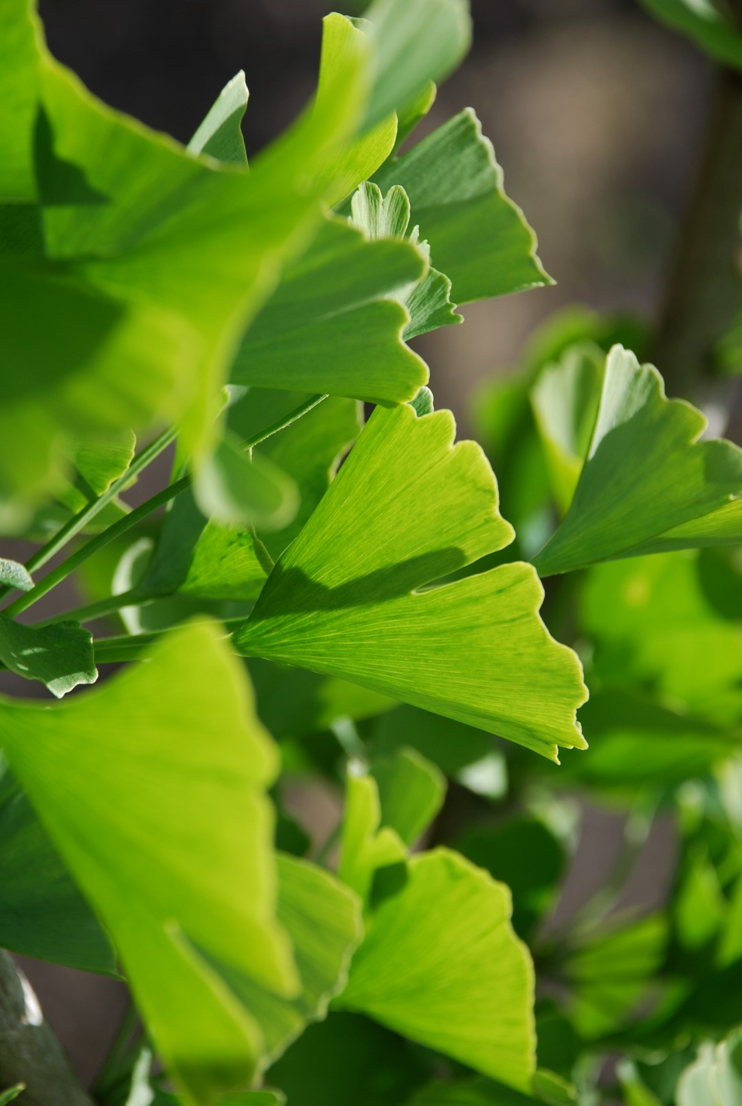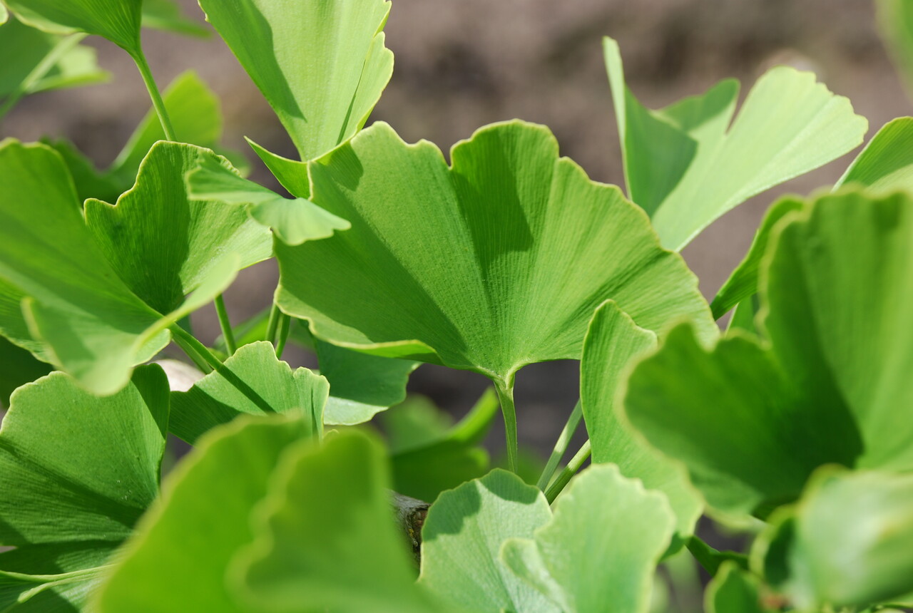 The leaves of Ginkgo biloba 'Tremonia' turn yellow in autumn.
