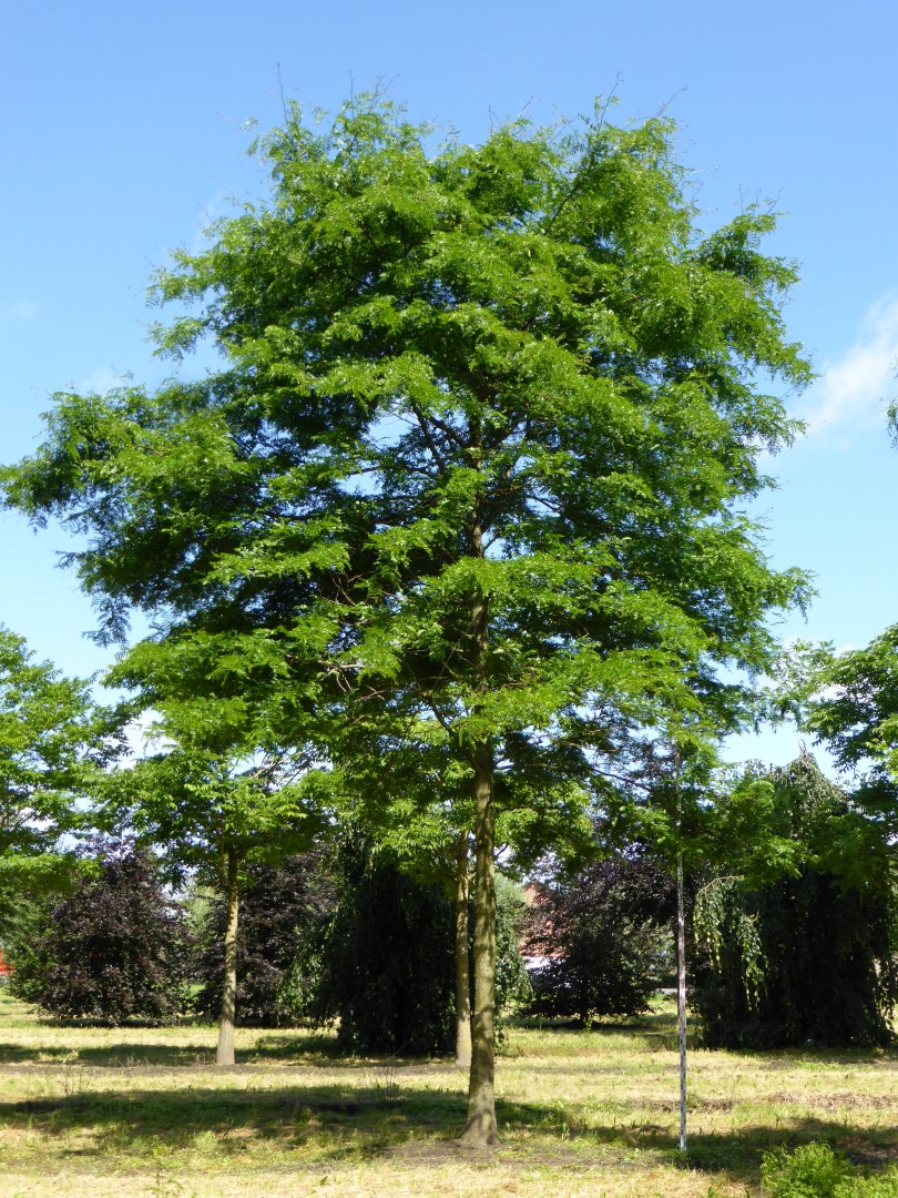 Gleditsia triacanthos f. inermis can eventually reach a height of 15 – 20 (25) m, fast growing, depending on the site and climate conditions.