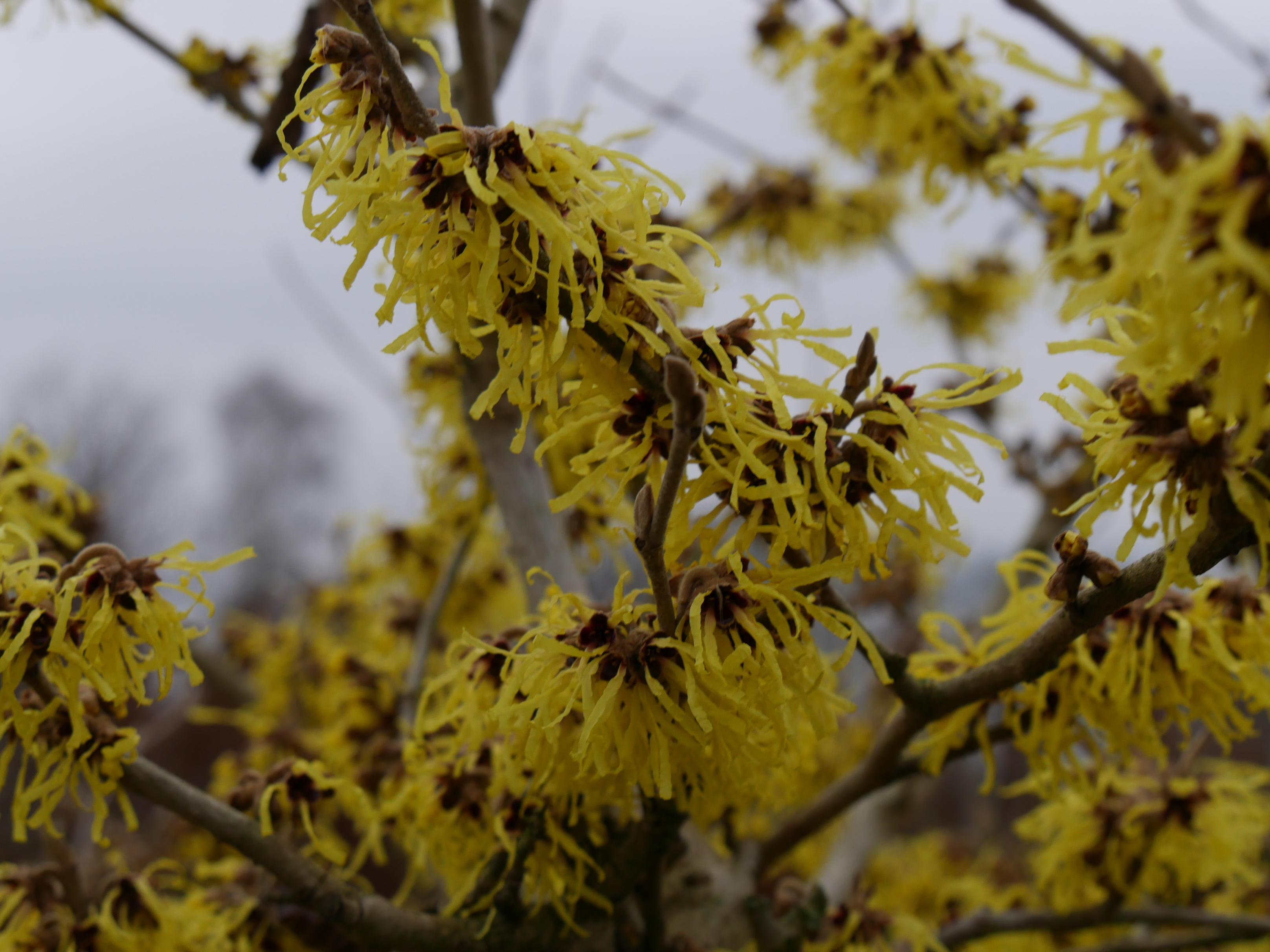 Hamamelis ×intermedia 'Pallida' blooms in december.