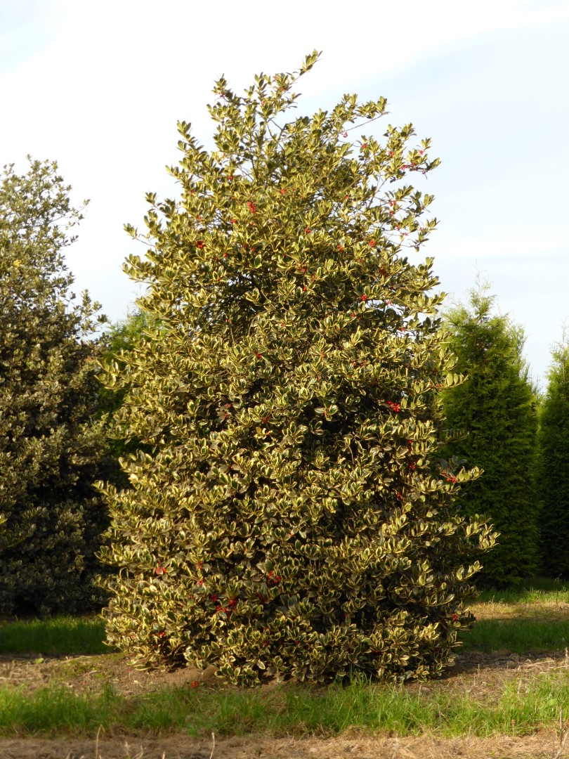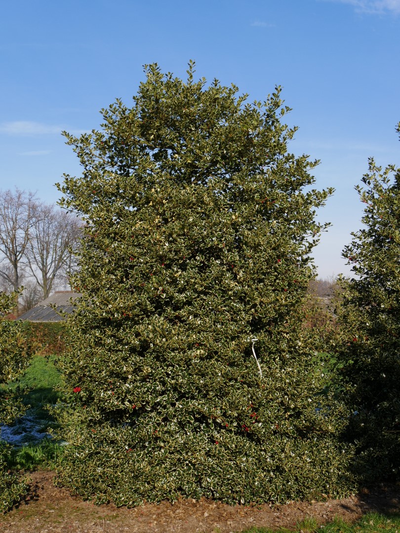 Ilex aquifolium 'Argentea Marginata' can eventually reach a height of 8-12 m, depending on the site and climate conditions.