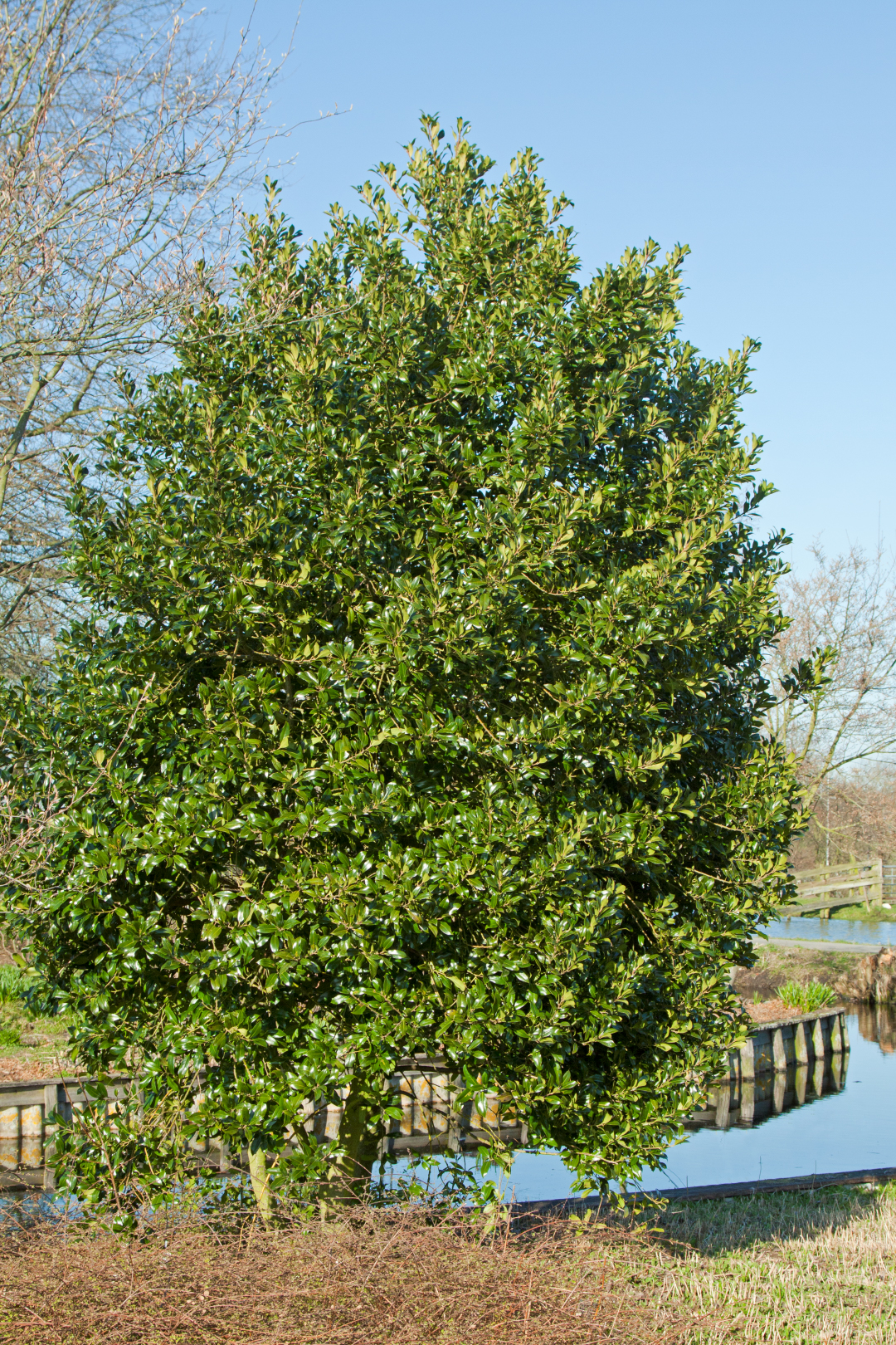 Small tree with densely branched, compact, pyramidal crown of 5 - 6 m. Young twigs are bright green, mature bark is green-brown and smooth. The leaves are ovate to broadly elliptical and very glossy dark green. The margins are very undulate, with 2 - 6 strong, sharp prickles on each side. The flowers are small and fairly inconspicuous. This male cultivar does not bear fruit. Can be regarded as ‘counterpart’ of the female Alaska. Prefers a humic, moist but well-drained soil and tolerates either acidic or calcareous soil. Also suitable for use as a hedge.