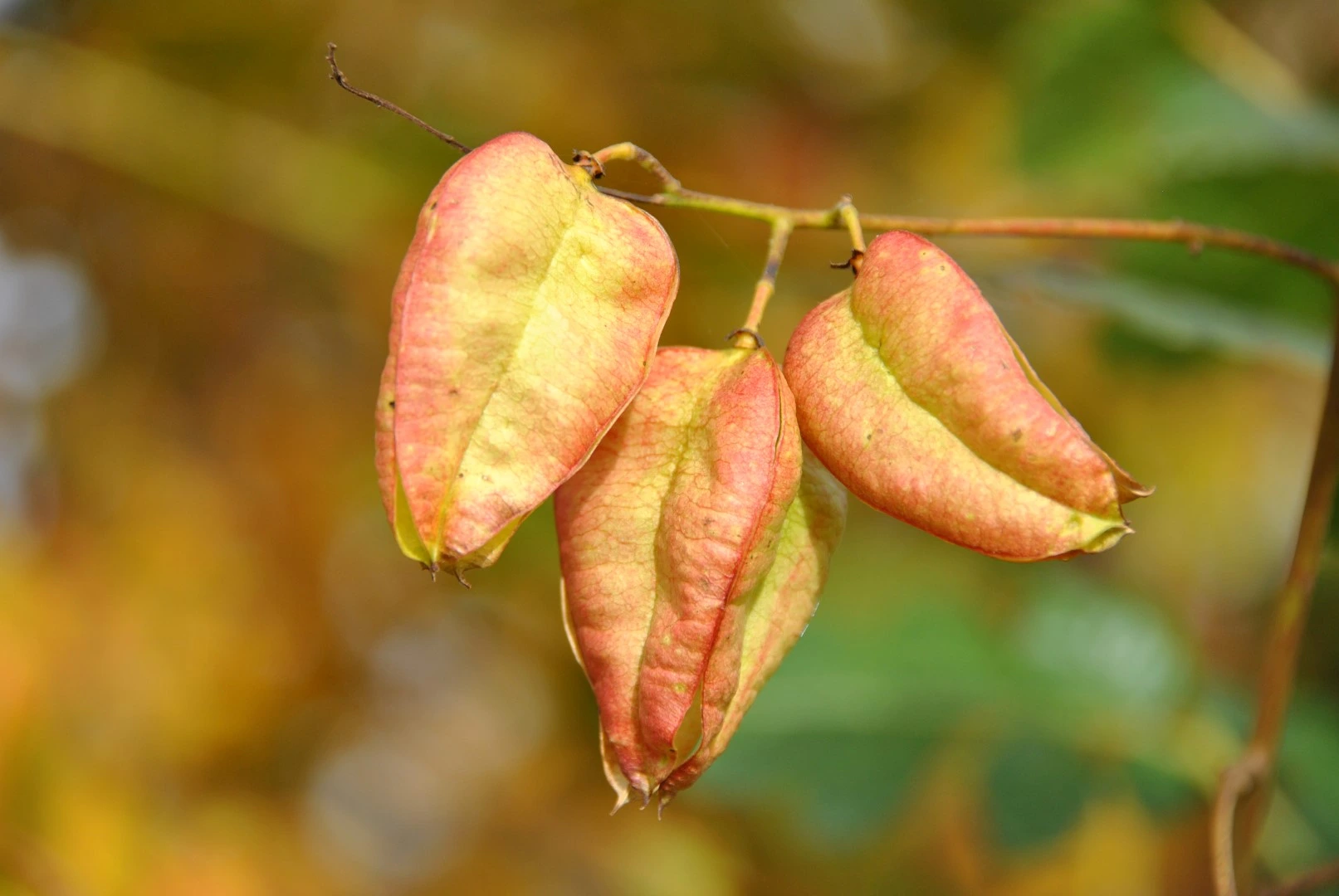 Multi-trunked tall shrub to medium-sized tree. The somewhat irregular crown becomes steadily broader until it is practically round. The large, pinnate (sometimes doubly pinnate) leaves consist of 7 - 15 leaf segments. These are approx. 7 - 10 cm long and the lobes have a serrated edge. The leaves are a bronze colour in the spring and turn yellow to orange in the autumn. The numerous small, yellow flowers are in terminal plumes approx. 30 cm long. The plumes are open and have a loose structure. After flowering, the bladder-like fruit appear, measuring approx. 4 cm. They change colour from green to bronze and contain a few black seeds. The fruit remains on the tree for a long time. This tree prefers a sheltered site since young specimens can suffer frost damage, but recover well. Koelreuteria paniculata flowers more abundantly the warmer the summer. After flowering it produces triangular bladder-like fruits that contain the seeds.