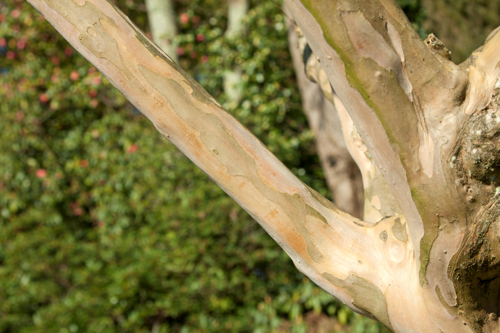 Small, sometimes multi-stemmed tree with a rather irregular, vase-shaped crown, to about 8 m tall but usually shorter. The old bark flakes off in thin plates, revealing the underlying bark. This varies from light brown to a deep cinnamon brown, giving rise to an attractive pattern of brown-grey and pinkish brown hues. The leaves are yellow-green on emerging, turning dark green in summer. The flowers are grouped in large terminal panicles. They are conspicuous for their heavily undulate petals. The flower colour naturally varies between white, pink and purplish red. The autumn colour of white-blossoming trees is usually yellow. Trees that blossom pink or purplish red have orange, red or purple autumn colours. Has few demands as to soil but prefers a sunny, sheltered position. Tolerates drought.