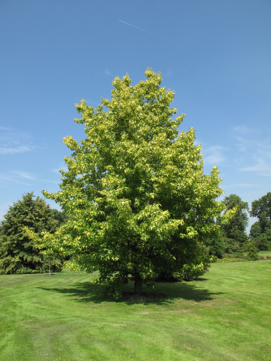 Liquidambar styraciflua 'Aurea' can eventually reach a height of 12-17 m, depending on the site and climate conditions.