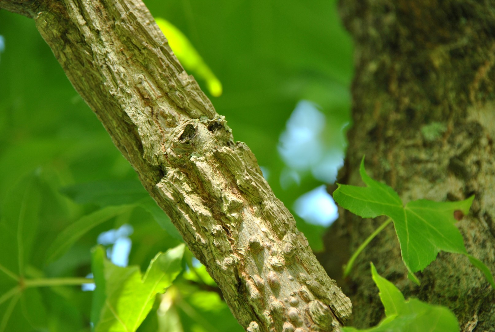 Beautiful cultivar with a regular, pyramidal growth pattern, up to about 20 m. The young leaf has a slightly purple hue and has reddish leaf stems. The leaves are somewhat smaller than typical of the species. In summer the foliage is bright green, turning orange-red to deep purple in autumn. The branches and trunk are conspicuously thickly covered with corky fissures. This makes for an attractive appearance, especially in winter. The flowers are inconspicuous and are followed by round, spiky capsules that persist in the winter. ‘Palo Alto’ was selected for its regular growth, beautiful autumn colours and conspicuous corky fissures. Prefers fertile, moist soil: cannot tolerate persisting drought.