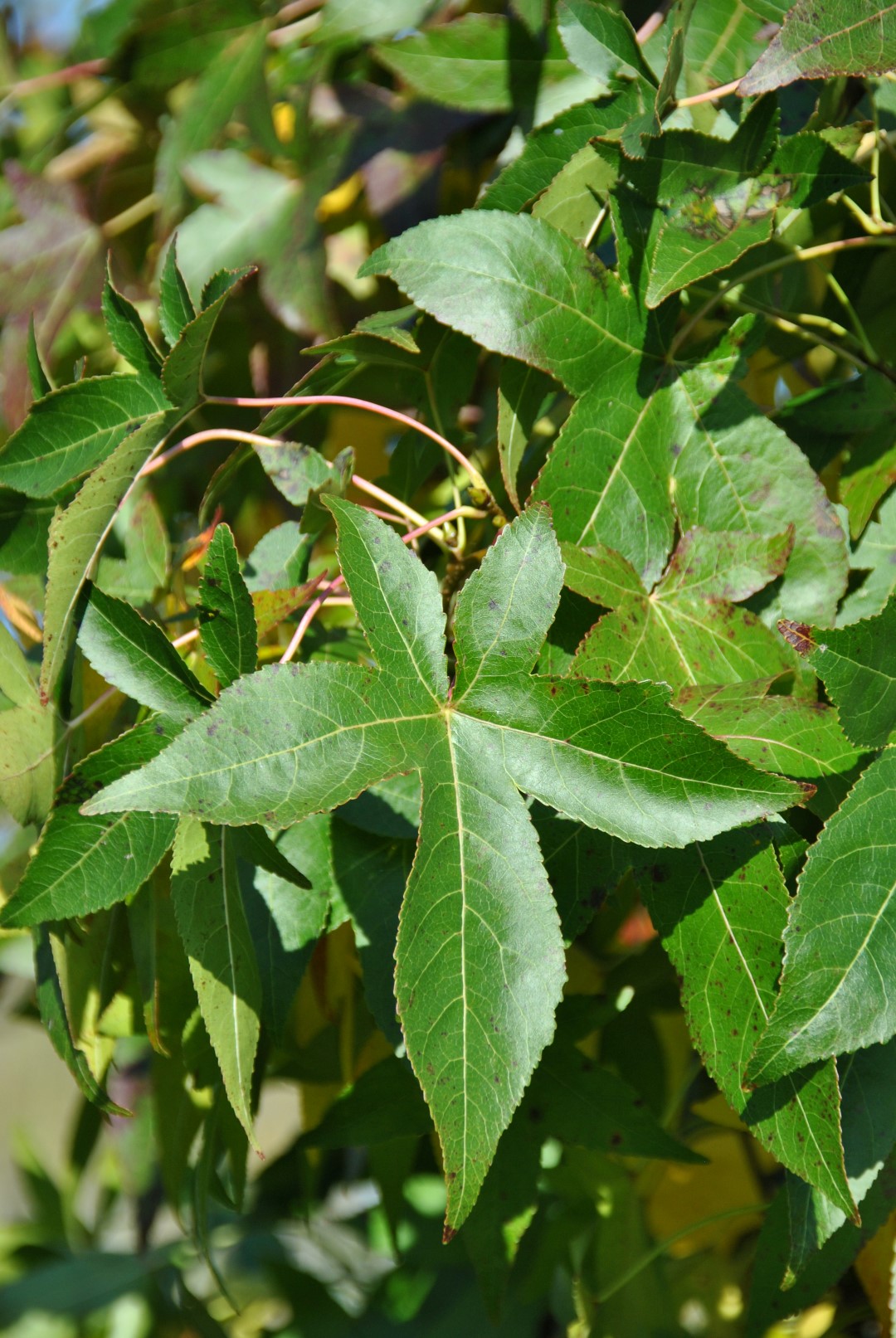 Medium-size to large tree with a columnar crown, remaining slender even when mature. At an estimated age of 30 years, the original tree was only about 3 m wide. The boughs grow straight up and the thinner twigs also grow vertically. They have no corky fissures. The leaf has no real autumn colour, but it sometimes turns yellow. The inconspicuous flowers are followed by spiky capsules that persist in the winter. In the 1980’s, Don Shadow found a mature tree growing wild at the side of a small lake in a nature reserve. The original tree was cut down around 2007, according to Shadow “by a man who wanted somewhere to put his fishing basket.” Suitable for use in parks, avenues and streets. Prefers fertile, moist soil: cannot tolerate persisting drought.