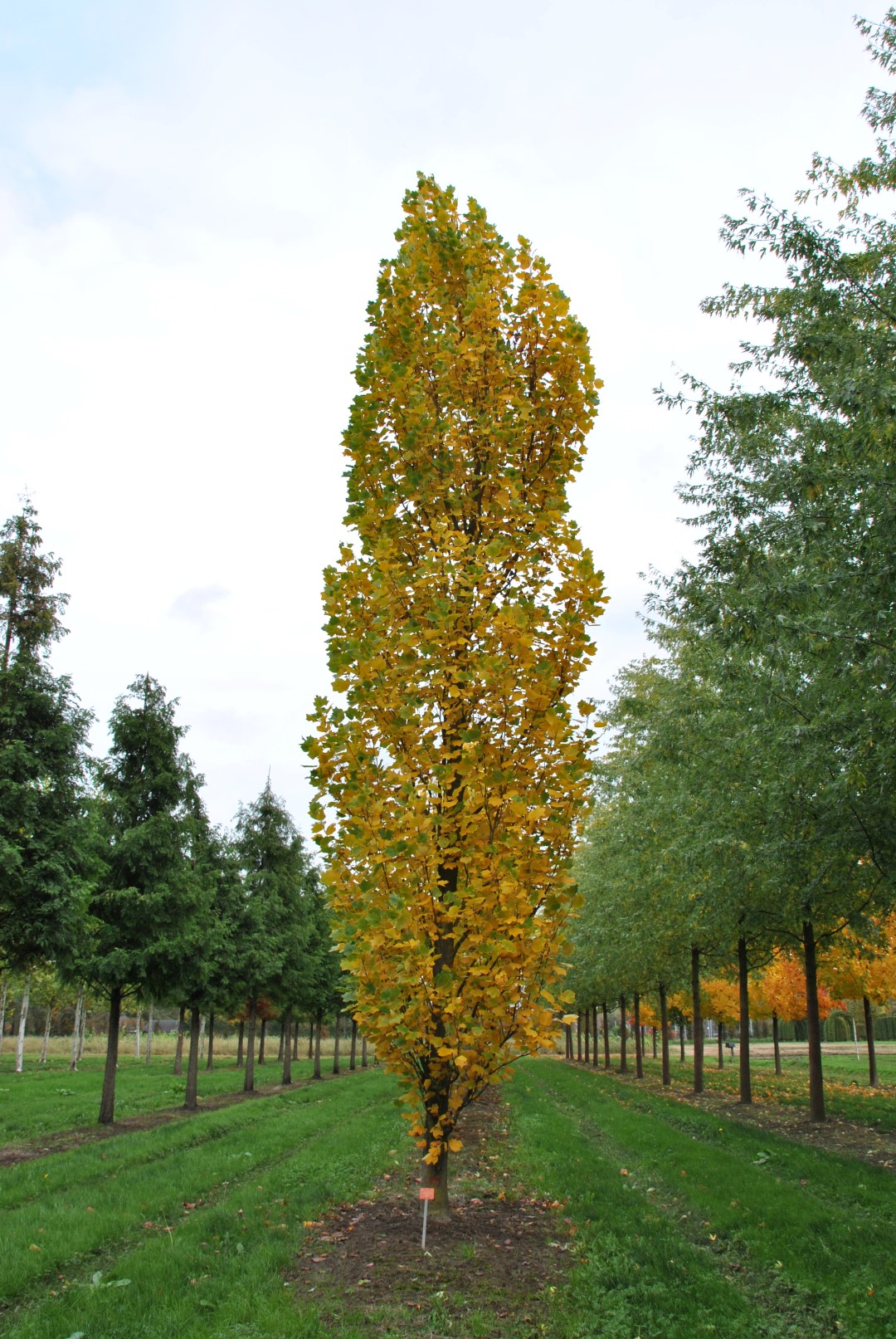 The leaves of Liriodendron tulipifera 'Fastigiatum' turn yellow in autumn.