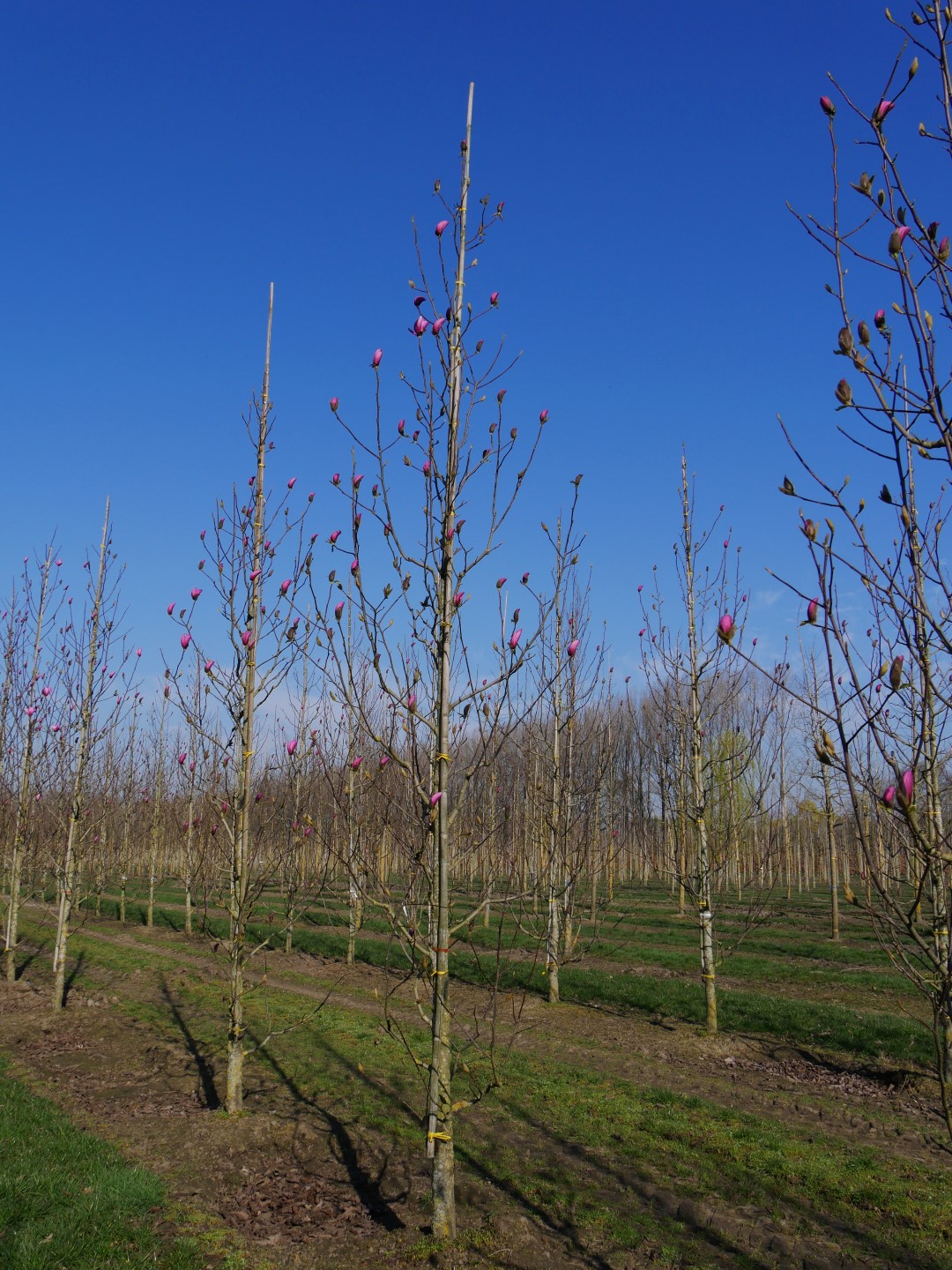 Medium-size tree, initially with a regular, ovoid crown and a straight central leader. The crown later becomes almost round, with an eventual height of about 9 m. The flower buds only develop in spring, so they cannot freeze in the winter. The large flowers open around late April. The flower buds are a deep reddish purple. The opened flowers are deep pinkish purple on the outside and clearly lighter on the inside. They retain a narrow tulip shape for a long time, but eventually open to a broad saucer shape. Good tree for use in housing estates and on squares, thanks also to the pronounced colours and profuse blossoming.