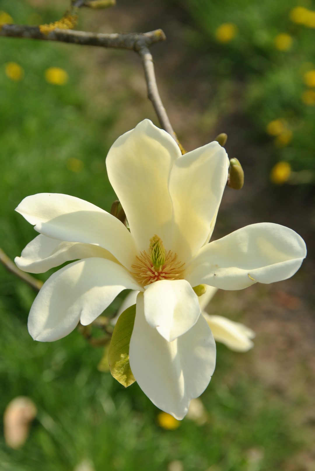 Fairly slender, vertically growing, small to medium size, usually multi-stemmed tree with an ovoid to broad ovoid crown. Can grow rather vigorously, especially when young, eventually becoming about 8 - 10 m high. The vase-shaped flowers can be over 20 cm across when fully open. They are an even, soft yellow with a dark yellow heart of stamens. On the inside, the petals have a small, red mark at the base. The flowers open around early to mid-May. Originated as a mutant of M. ‘Sundance’ after colchicine treatment. Suitable for parks and gardens.