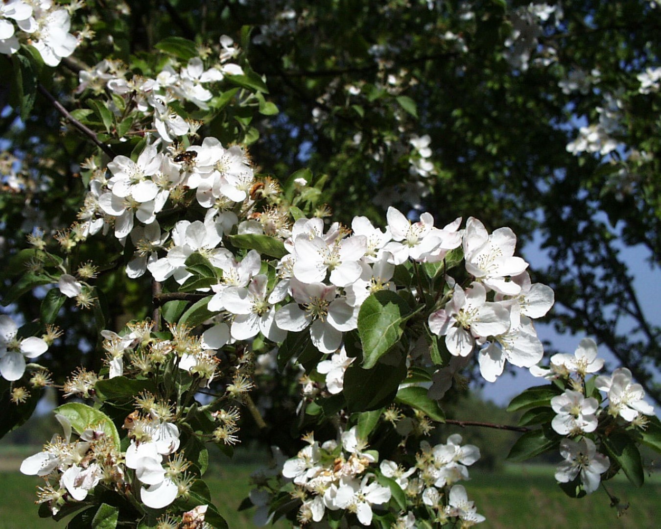 An ornamental apple tree with a broad, horizontal, later pendulous manner of growth and a height of 4 - 5 m. The leaves are broad, covered with felt-like hair and light green in colour. In early May white flowers appear that are remarkably pink when in bud. The flowers are single. The short-stemmed fruits are glossy golden yellow and have a diameter of 2 - 3 cm. They remain only a short time on the tree. 'Butterball' is used in gardens and parks and makes heavy demands on the soil as regards moisture supply and fertility. 'Butterball' is resistant to mildew but sensitive to scab. The tree is sensitive to sea wind. Winter hardiness zone: 5