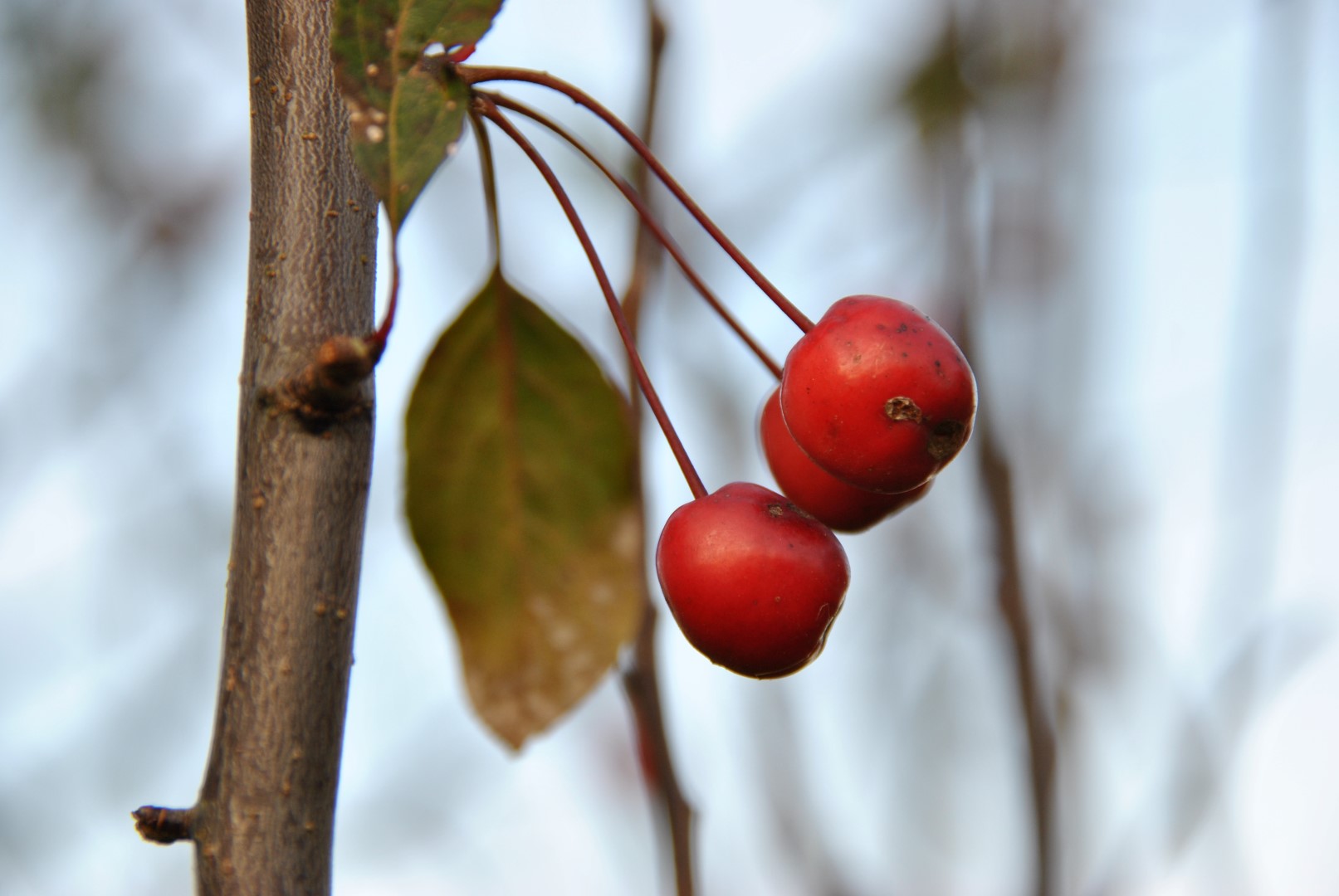 Small to medium-size tree with distinctly upright ovoid crown. The crown is of moderate density. The year-old twigs are purplish brown. The sprouting leaf is reddish turning bronze to purple-green in the summer. The 3 to 4 cm purplish pink flowers open from brown-purple buds in May. They are followed by approx. 1.5 cm crab apples. These are red to purplish red and remain in the tree until the end of November. ‘Mokum’ began as a seedling between a batch of M. ‘Profusion’ and M. ‘Liset’. A good crab apple that is only slightly susceptible to scab and hardly ever suffers from mildew or canker.