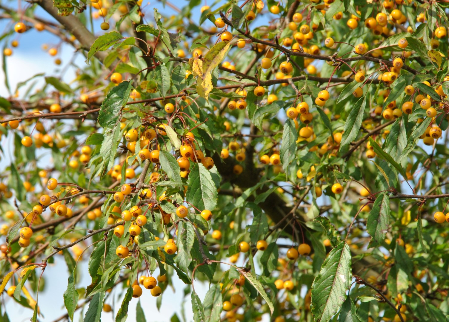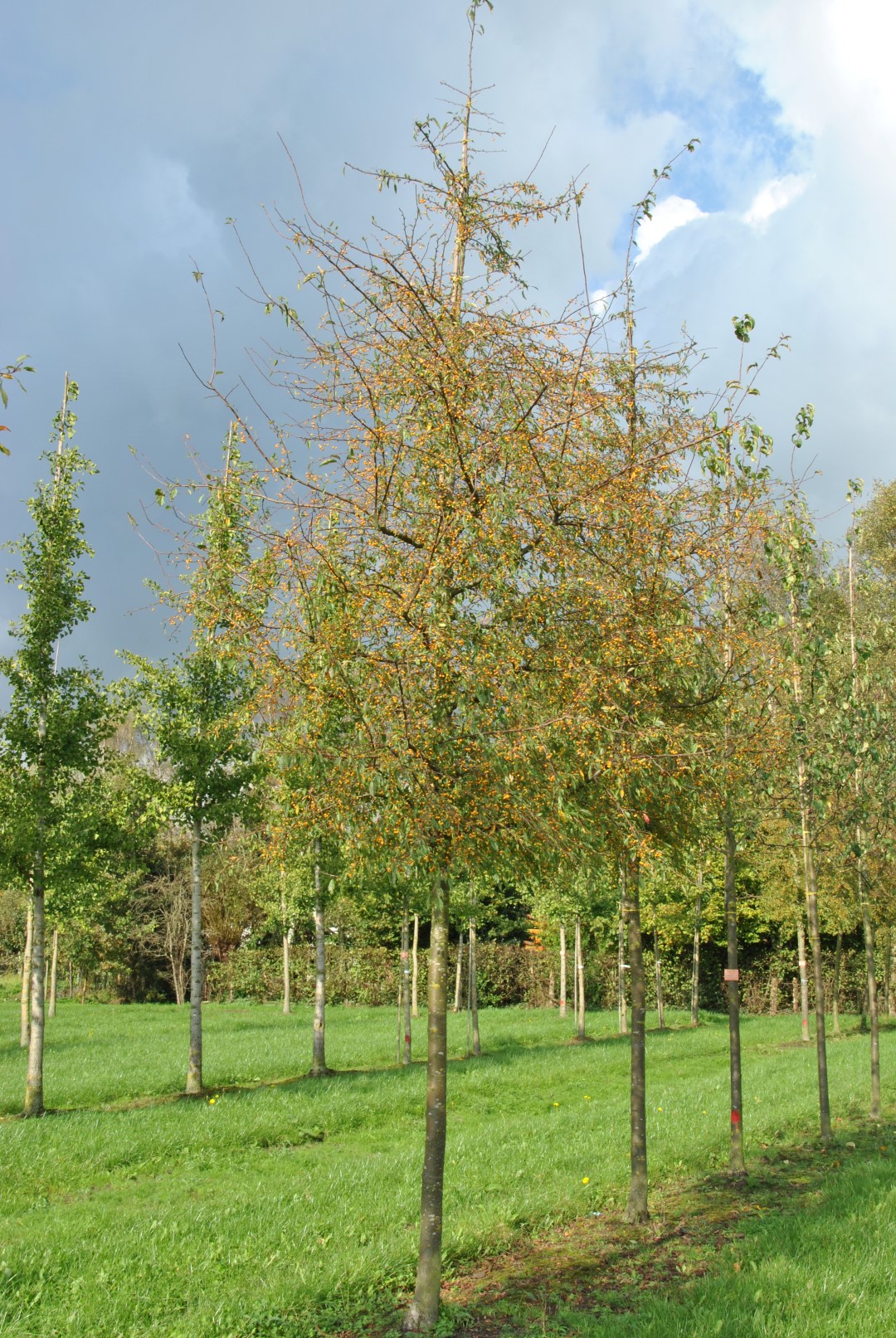 Malus toringo 'Brouwers Beauty' is a tree that grows vertically and has a strong main stem. It eventually assumes a broad fan shape with somewhat overhanging branches. Height and width 5 - 6 m. The oval green leaves have a sharply serrated edge. It produces abundant pale pink flowers. The flowers are single, the flower buds purple-pink. Yellow to orange-yellow fruits, Ø approx. 1 cm, appear in the late summer and remain on the tree until the end of October. For parks, wide streets, green verges and small gardens. Slightly sensitive to scab. Winter hardiness zone: 5a