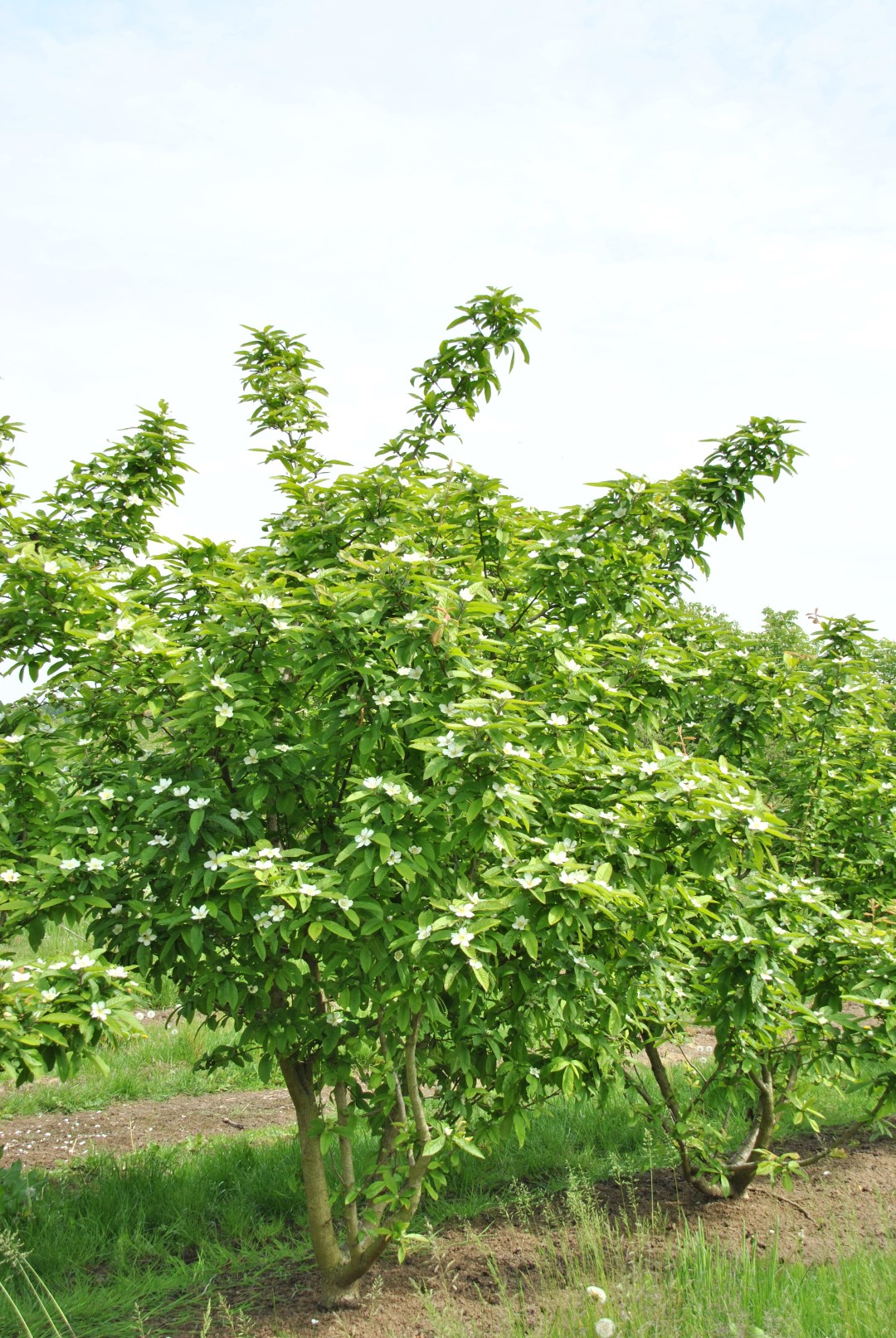 Slow growing small tree with heavy main branches and irregular, flat-topped, spherical crown to approx. 6 m tall. The young twigs are grey and woolly whereas the mature bark is light grey and smooth. The elongated to obovate leaf is very finely serrated with soft hairs, especially when young. In autumn it turns reddish brown to deep golden yellow. The brown, hard fruits have strikingly large calyx valves and are only edible when rotting. Often after the first night frost. The fruits of ‘Westerveld’ are a little larger than the species and this breed is guaranteed to bear a large annual crop. In around 1975 it was included and named by Westerveld tree nursery in the NAKB (Netherlands Inspection Service for Horticulture) inspection. Deep rooting tree. Tolerates limy soils, is very hardy and heat resistant.