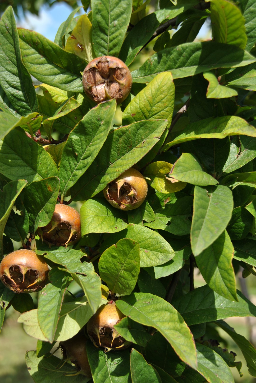 The leaves of Mespilus germanica 'Westerveld' turn yellow, red in autumn.